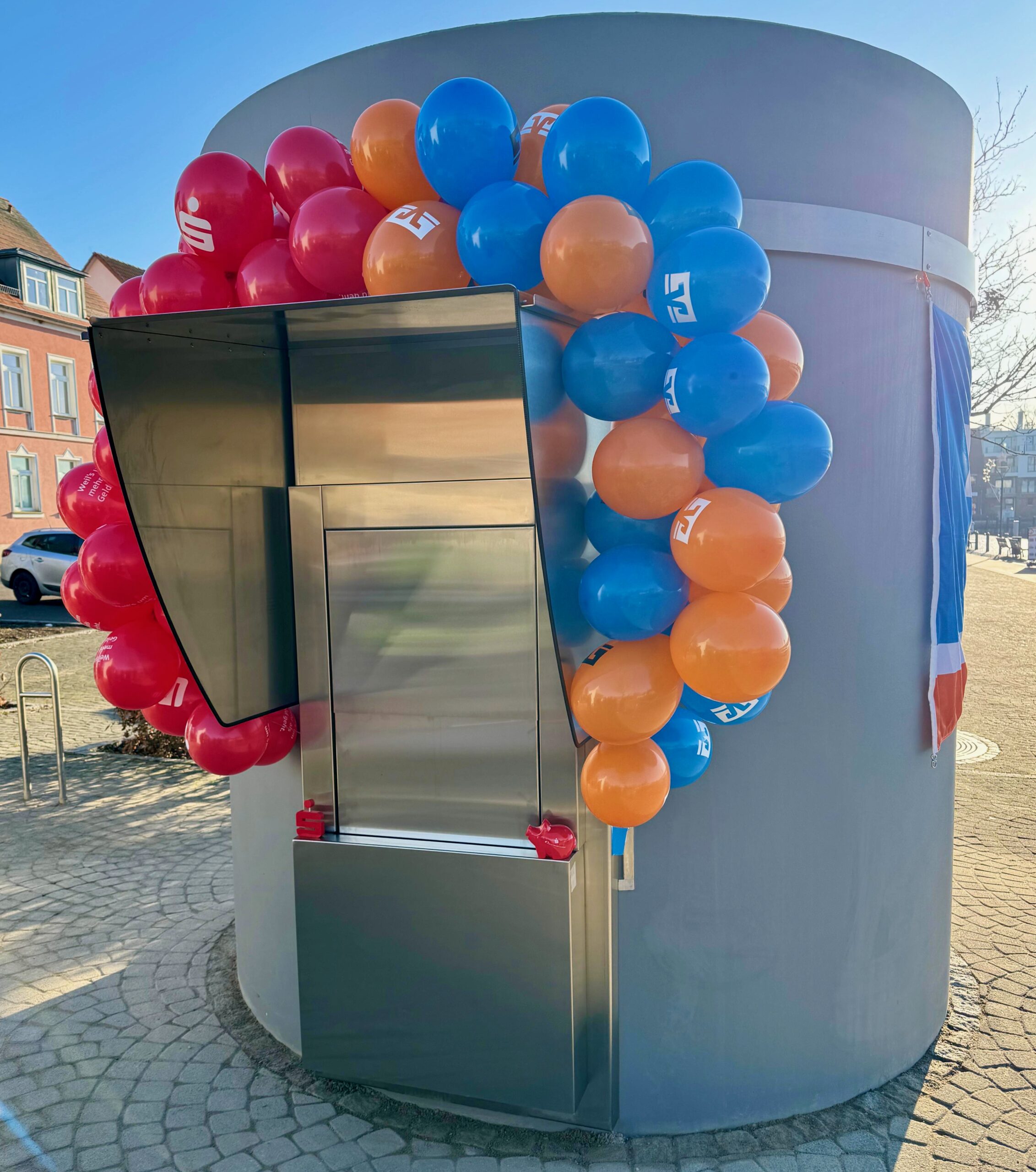 Der Automat hat eine Sicherungstür aus Edelstahl, die nachts oder beispielsweise auch Silvester hochfährt, um ihn vor Vandalismus zu schützen. In Kürze soll der Pavillon auch noch farblich verschönert werden.