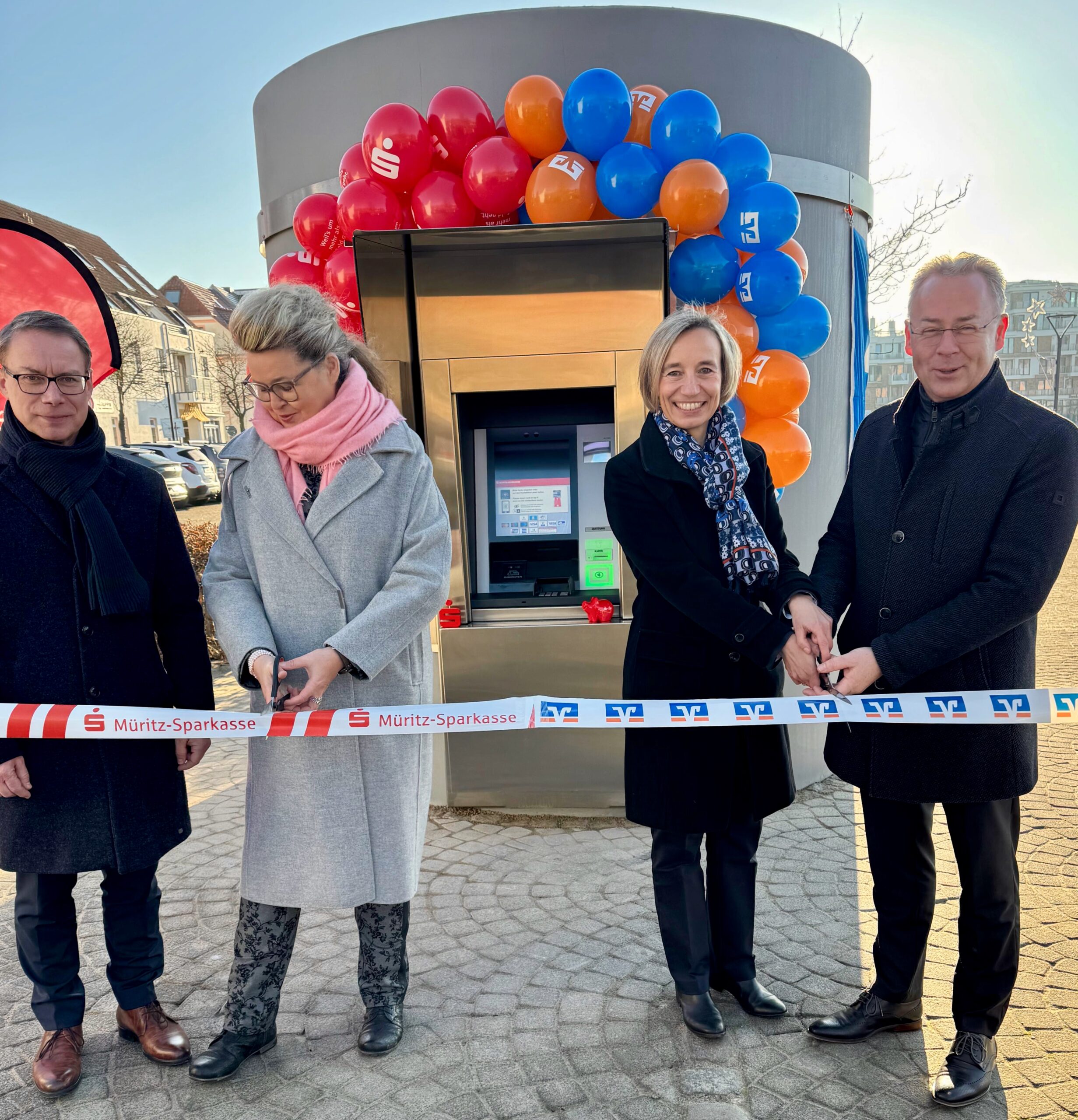 Zwei Banken – ein Projekt: Gestern ist der neue Selbstbedienungs-Pavillon am Warener Hafen offiziell eröffnet. Der moderne Servicepunkt ist das Ergebnis einer engen und konstruktiven Zusammenarbeit zwischen der Müritz-Sparkasse und der Raiffeisenbank Mecklenburger Seenplatte eG, die gemeinsam das Ziel verfolgen, den Menschen in der Region einen zeitgemäßen und gut erreichbaren Zugang zu banknahen Dienstleistungen zu ermöglichen. Der Pavillon bietet Kunden von 5 bis 24 Uhr sichere und komfortable Ein- und Auszahlungen von Bargeld. Durch die Lage direkt am Hafen entsteht ein zentraler Anlaufpunkt, der sowohl für Einheimische als auch für Besucher gut erreichbar ist.