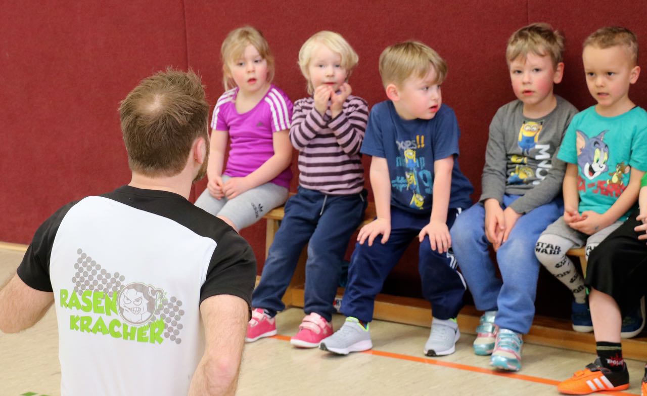 In dieser Woche hatten zehn Mädchen und Jungen der Kita „Lütt Matten“ richtig viel Spaß in der Turnhalle Beimlerstraße. Trainiert wurden sie von Robert Peucker von der Fußballschule „Rasenkracher“, die das Kita-Training anbietet.