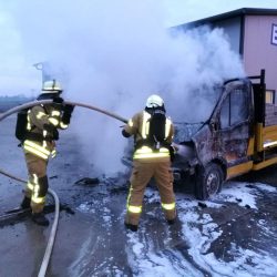 Der offenen Opel-Kastenwagen stand beim Eintreffen der Wehr in Flammen und brannte aus. Personen wurden zum Glück nicht verletzt.