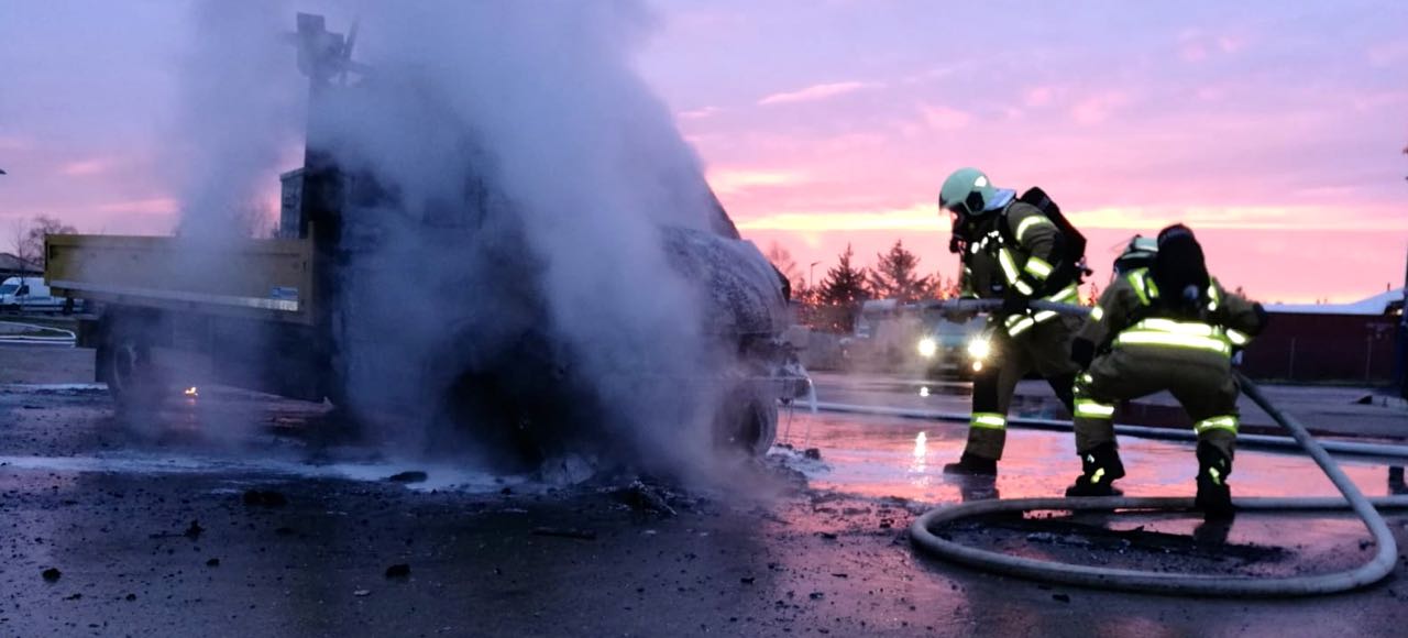 Wenig später ging’s dann in die Johann-Heinrich-von-Thünen-Straße.  Auf dem Betriebsgelände des Betonwerkes brannte ein Lkw.