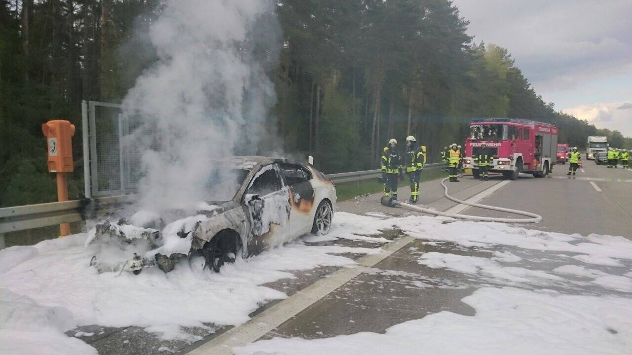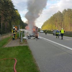 Heute Abend gegen 18 Uhr kam es auf der Bundesautobahn 19, zwischen den Anschlussstellen Linstow und Malchow in Richtung Berlin zum Brand eines Fahrzeuges.