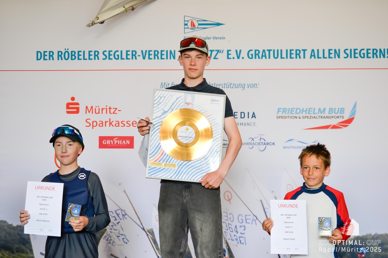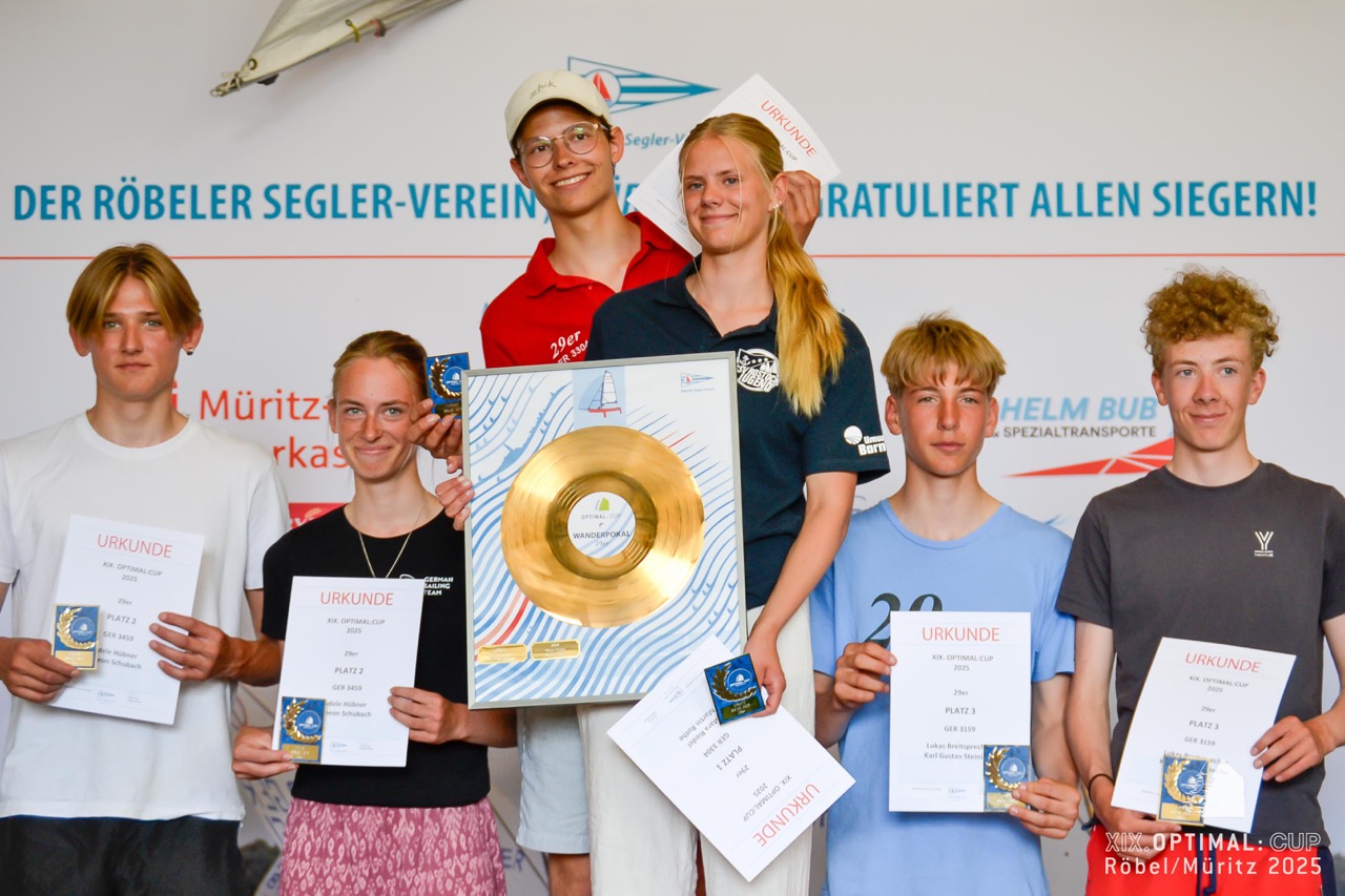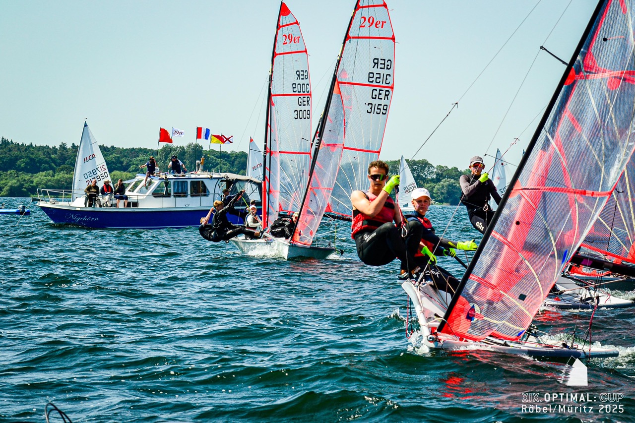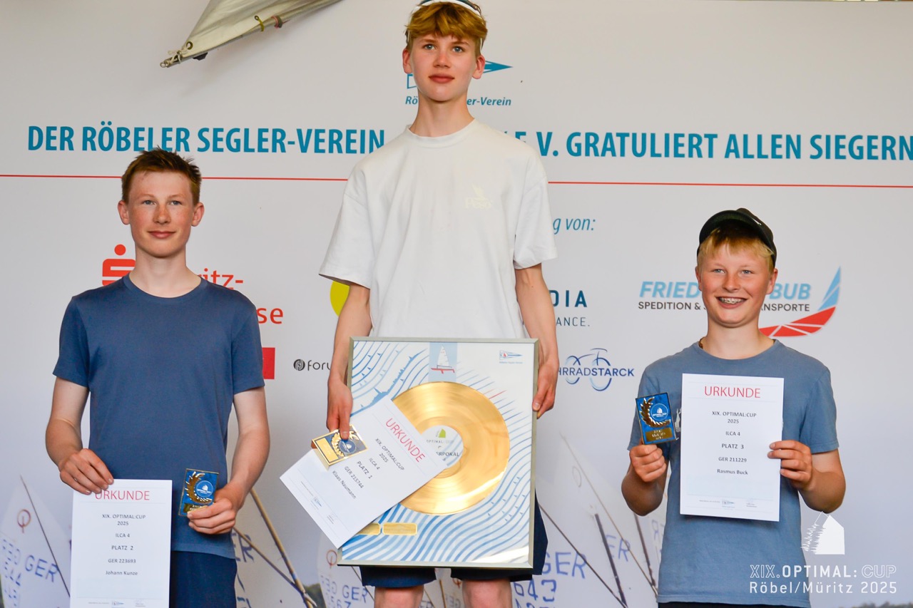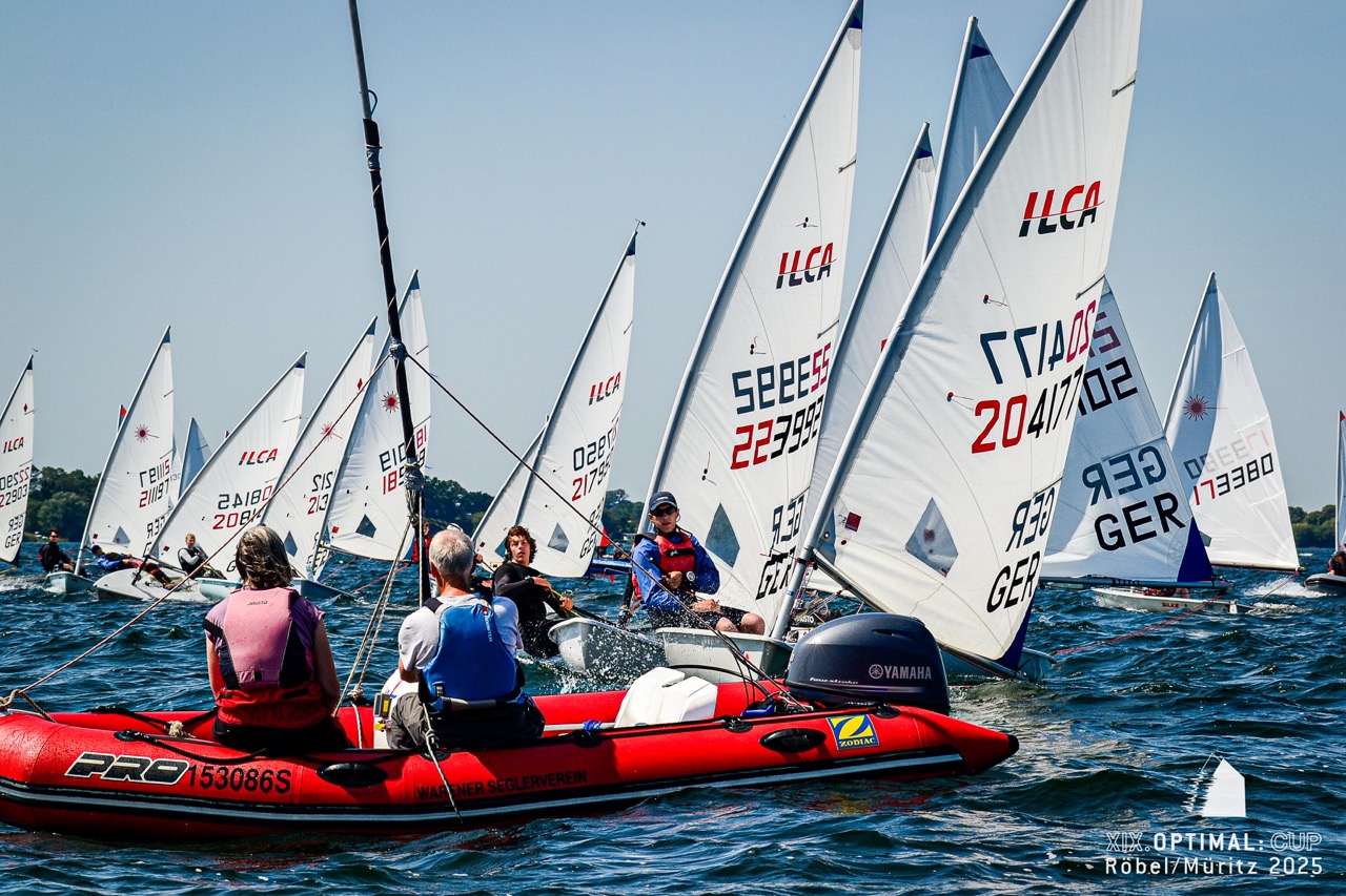 Beim 19. OPTIMAL:CUP des Röbeler Segler-Vereins gingen vor wenigen Tagen rund 100 Boote in den Klassen Optimist A & B, ILCA 4 & 6 sowie 29er an den Start. Am Samstag herrschten bei strahlendem Sonnenschein und frischem Ostwind ideale Segelbedingungen. Vier Wettfahrten konnten bei den Optimisten gewertet werden, drei bei ILCA und 29er. Besonders die kräftige Welle forderte den jüngsten Seglern einiges ab. Am Sonntag ließ der Wind die Teilnehmer allerdings im Stich. Nach längerer Startverschiebung wurde entschieden, keine weiteren Rennen durchzuführen. Stattdessen rundeten eine große Tombola, die Vergabe der begehrten Wanderpokale – der „Goldenen Schallplatten“ – und ein gemütlicher Ausklang mit ausreichend Zeit für die Rückreise das Regattawochenende ab.