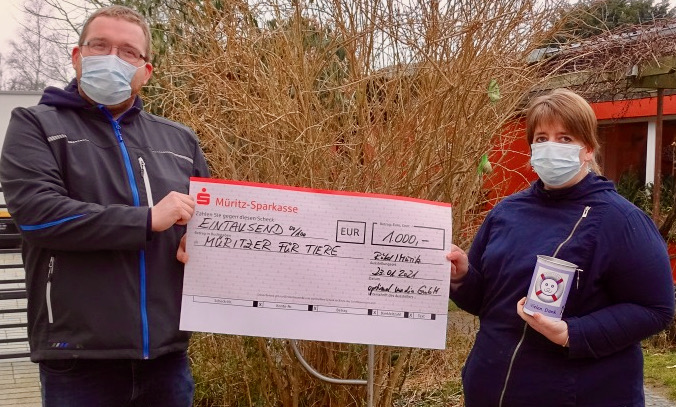 „Müritzer für Tiere“ ist eine ehrenamtliche, private Initiative, die mit vielen freiwilligen Helfern zusammenarbeitet. Im Mittelpunkt des Engagements steht die Hilfe für Menschen, die mit dem eigenen Haustier oder anderen Tieren in Not geraten sind sowie die Betreuung ausgesetzter Tiere. Dafür ist die Initiative auf materielle Zuwendungen angewiesen.