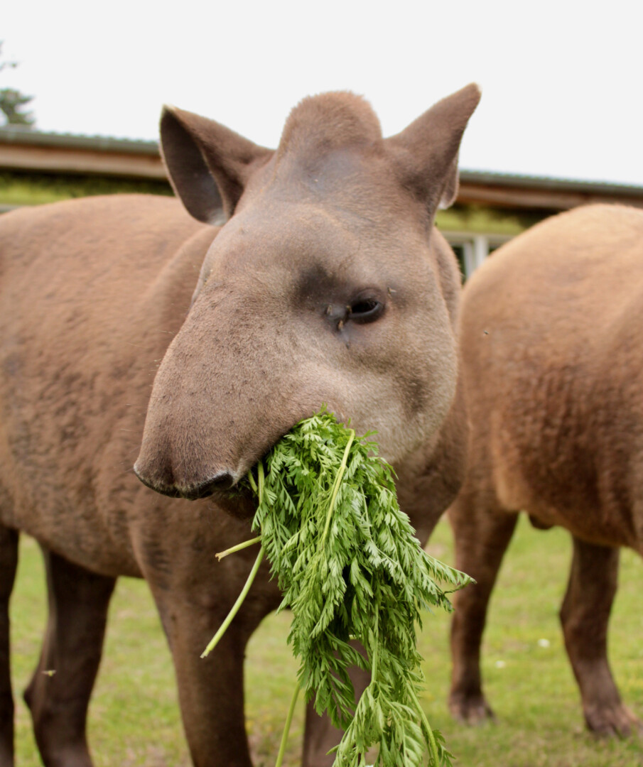 Die Spitzen-Orakel-Tapire, die bisher stets den richtigen Riecher bewiesen, haben sich zuerst auf die Möhren von Lana, also Deutschland, gestürzt. Erst, nachdem sie diese komplett vertilgt und den Fotografen ausgiebig beschnuppert hatten, knabberten sie die Möhren von Schweiz-Swenja weg.