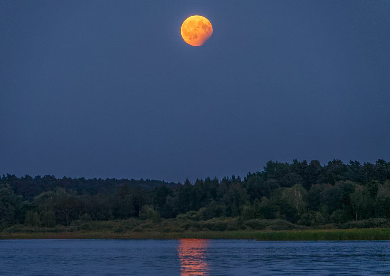 Der Mond wirkt etwas angeknabbert. Das liegt einer einer partiellen Mondfinsternis, die wir heute haben und die gegen 23 Uhr beendet sein wird.