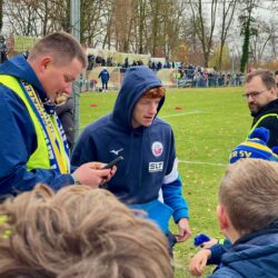 Die besondere Stimmung hat auch die Hansa-Spieler eingefangen. Sie nahmen sich richtig viel Zeit für ihre Fans – vor dem Spiel, in der Pause und auch im Anschluss. Unzählige Selfies und Unterschriften brachten sie mit einer Gelassenheit hinter sich, die nicht so oft vorkommt. Kein Gemurre, kein überhebliches Getue und kein „Ich habe keine Zeit“ – die Stars der Drittliga-Mannschaft kümmerten sich um ihre Fans, die ihnen so nahe waren, wie noch nie. Bei dem einen oder anderen kleinen Besucher kullerten ob so viel Nähe sogar ein paar Tränen.