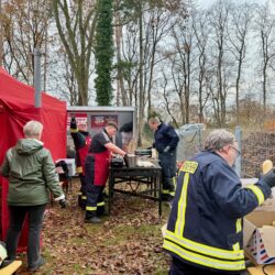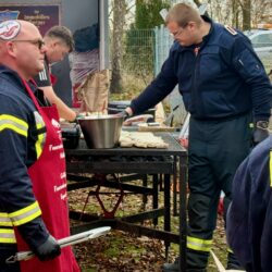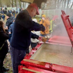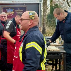 Ohnehin war das Pokalspiel fair und immer wieder von freundschaftlichen Gesten geprägt. So, wie bei den vielen Zuschauern. Schon im Vorfeld hat der Penzliner SV alles gegeben, um den Besuchern mehr zu bieten, als „nur“ 90 Minuten Fußball. Da gab es beispielsweise speziell angefertigte Schals. Auf der einen Seite mit dem Schriftzug Penzliner SV, auf der anderen mit Hansa Rostock. 300 davon wurden produziert – und sie gingen weg, wie die sprichwörtlichen warmen Semmeln. Dazu Fahnen und Mützen. Die Feuerwehr des Ortes hat sich ebenfalls mit voller Einsatzkraft eingebracht. Die Mitglieder versorgten die Besucher mit Bratwurst, Steaks und – wie der Stadionsprecher verkündete – dem besten Eintopf der Welt. Der war auch wirklich sehr lecker, wenngleich der Koch vielleicht etwas verliebt war. Macht aber nichts, so hatten die Getränkeanbieter auch gleich mehr zu tun. Für den nötigen Senf auf der Wurst sorgte übrigens Feuerwehrchef Remo Henning persönlich.