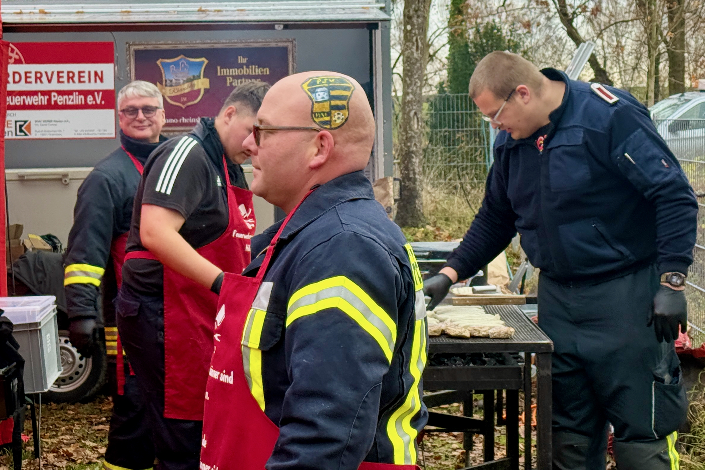 Ohnehin war das Pokalspiel fair und immer wieder von freundschaftlichen Gesten geprägt. So, wie bei den vielen Zuschauern. Schon im Vorfeld hat der Penzliner SV alles gegeben, um den Besuchern mehr zu bieten, als „nur“ 90 Minuten Fußball. Da gab es beispielsweise speziell angefertigte Schals. Auf der einen Seite mit dem Schriftzug Penzliner SV, auf der anderen mit Hansa Rostock. 300 davon wurden produziert – und sie gingen weg, wie die sprichwörtlichen warmen Semmeln. Dazu Fahnen und Mützen. Die Feuerwehr des Ortes hat sich ebenfalls mit voller Einsatzkraft eingebracht. Die Mitglieder versorgten die Besucher mit Bratwurst, Steaks und – wie der Stadionsprecher verkündete – dem besten Eintopf der Welt. Der war auch wirklich sehr lecker, wenngleich der Koch vielleicht etwas verliebt war. Macht aber nichts, so hatten die Getränkeanbieter auch gleich mehr zu tun. Für den nötigen Senf auf der Wurst sorgte übrigens Feuerwehrchef Remo Henning persönlich.