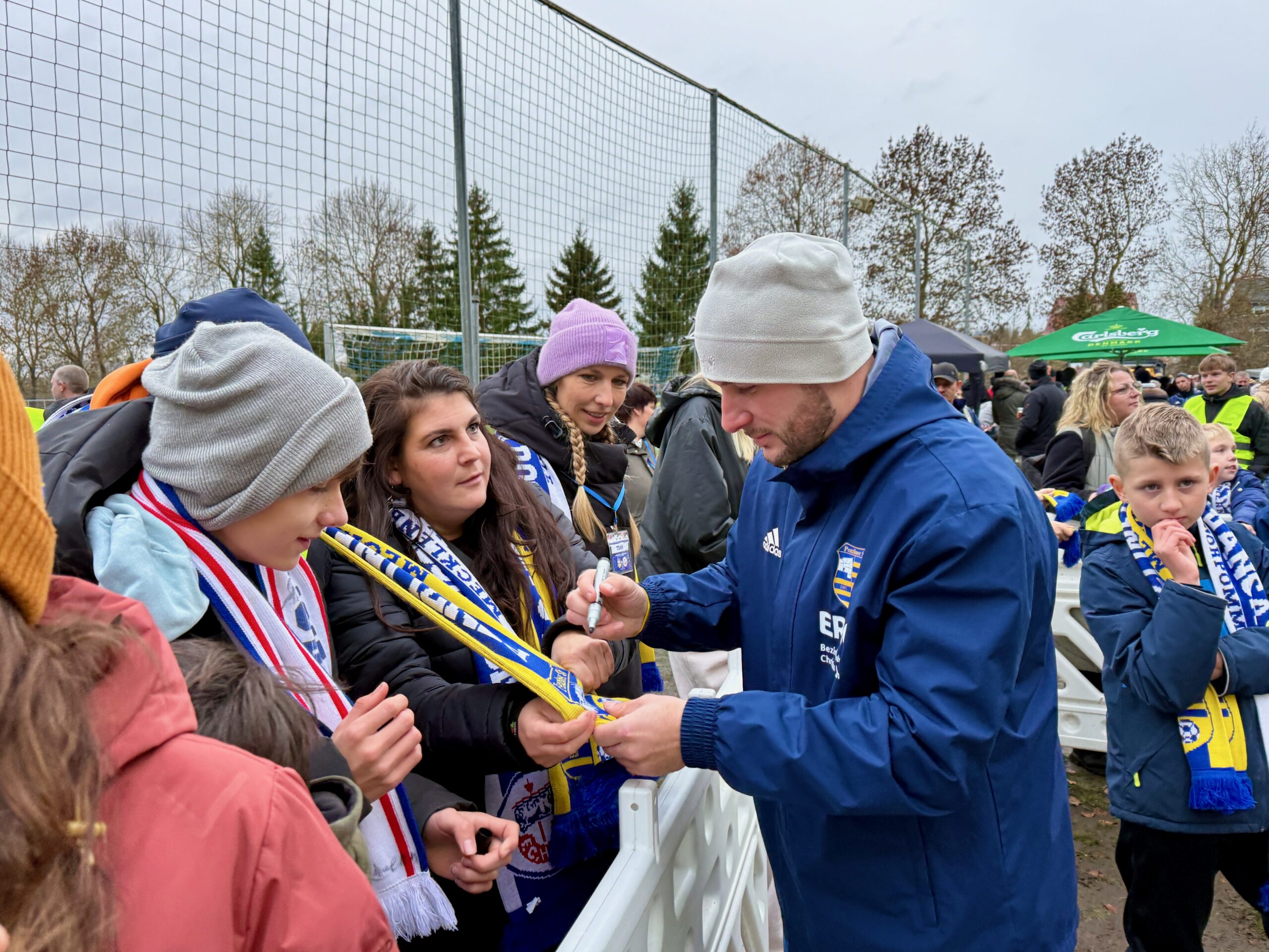 Die besondere Stimmung hat auch die Hansa-Spieler eingefangen. Sie nahmen sich richtig viel Zeit für ihre Fans – vor dem Spiel, in der Pause und auch im Anschluss. Unzählige Selfies und Unterschriften brachten sie mit einer Gelassenheit hinter sich, die nicht so oft vorkommt. Kein Gemurre, kein überhebliches Getue und kein „Ich habe keine Zeit“ – die Stars der Drittliga-Mannschaft kümmerten sich um ihre Fans, die ihnen so nahe waren, wie noch nie. Bei dem einen oder anderen kleinen Besucher kullerten ob so viel Nähe sogar ein paar Tränen.