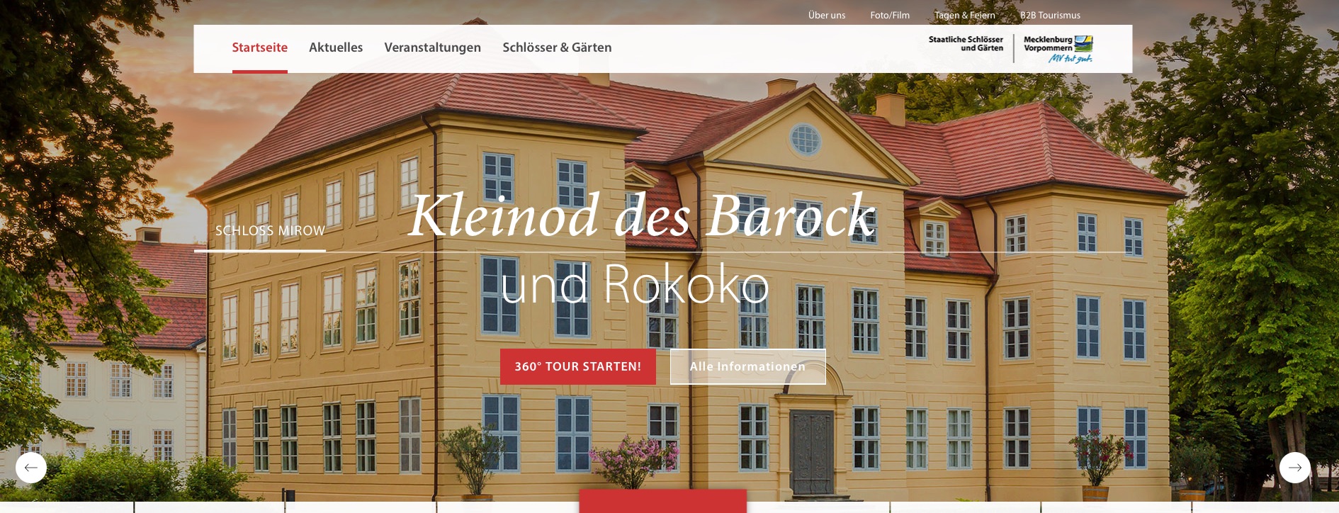 Zum Start der neuen Saison ist der Internetauftritt der Staatlichen Schlösser und Gärten M-V modernisiert worden. Der etwas angestaubte Internetauftritt der Schlösser und Gärten M-V ist komplett überarbeitet worden und wird nun mit modernem Webdesign und interaktiven Elementen den gestiegenen Ansprüchen zeitgemäßer Internetnutzung gerecht.