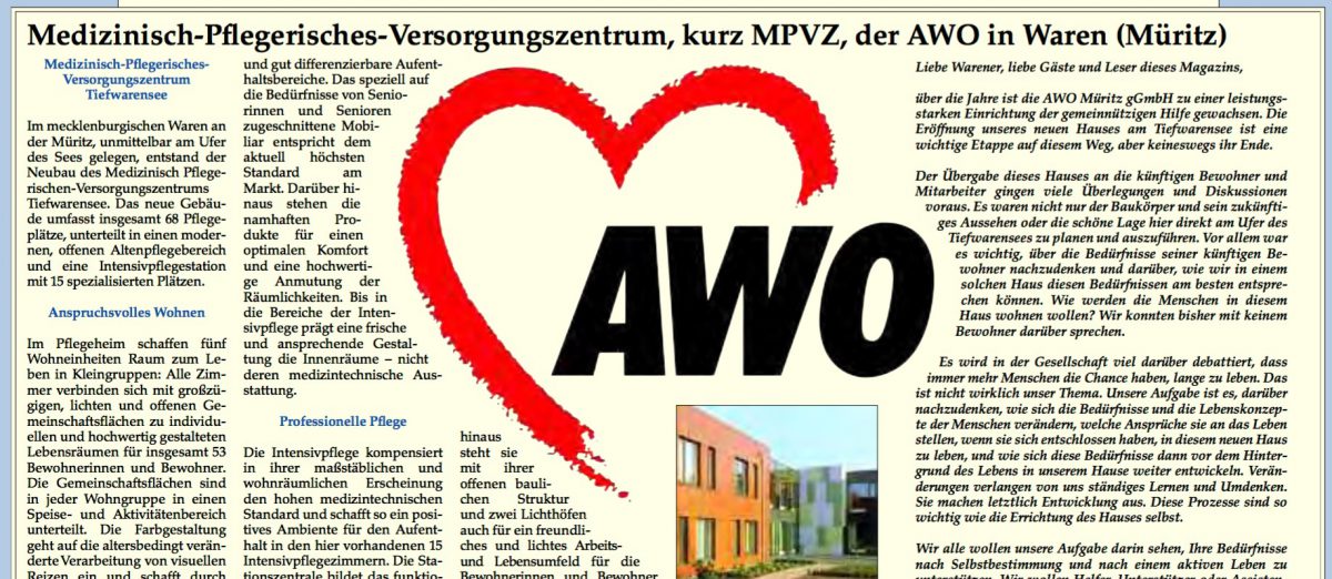 Dieses Haus ist vor gut zehn Jahren prächtig gefeiert worden – sogar die damalige Bundesgesundheitsministerin Ulla Schmidt (SPD) reiste an die Müritz, um den Grundstein für das AWO-Heim am Tiefwarensee in Waren zu legen. Dabei ging’s nicht um das Pflegeheim an sich, sondern die Kombination mit sogenannten Intensiv-Pflegeplätzen, die es in Deutschland in dieser Form so noch nicht oft gab. Eine Einrichtung also für Menschen, die sehr intensiv betreut werden müssen, zumeist sogar beatmet. Doch die 15 Intensivpflegeplätze gibt es nicht mehr. Die AWO Müritz hat diesen Bereich Ende Juni geschlossen. Das bestätigte Geschäftsführer Stephan Arnstadt auf Anfrage von „Wir sind Müritzer“.