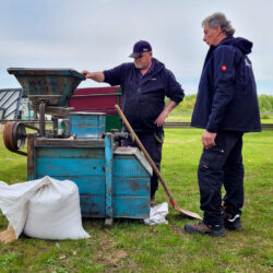 Eine Stunde nach Öffnung hatten sich schon mehr als 1.000 Besucher im Agroneum eingefunden. Wie gewohnt gab es rund um das bunte Markttreiben Landwirtschaft hautnah zu erleben. Das Technikteam präsentierte Arbeiten am Steinbrecher, schrotete Getreide und bestellte mit der Kartoffellegemaschine den Museumsacker. Für diese Vorführungen werden stets die historischen Exponate aus der umfangreichen Sammlung eingesetzt. So wurde allen Besuchern ein interessanter Einblick in die Landwirtschaft vergangener Zeiten gewährt.