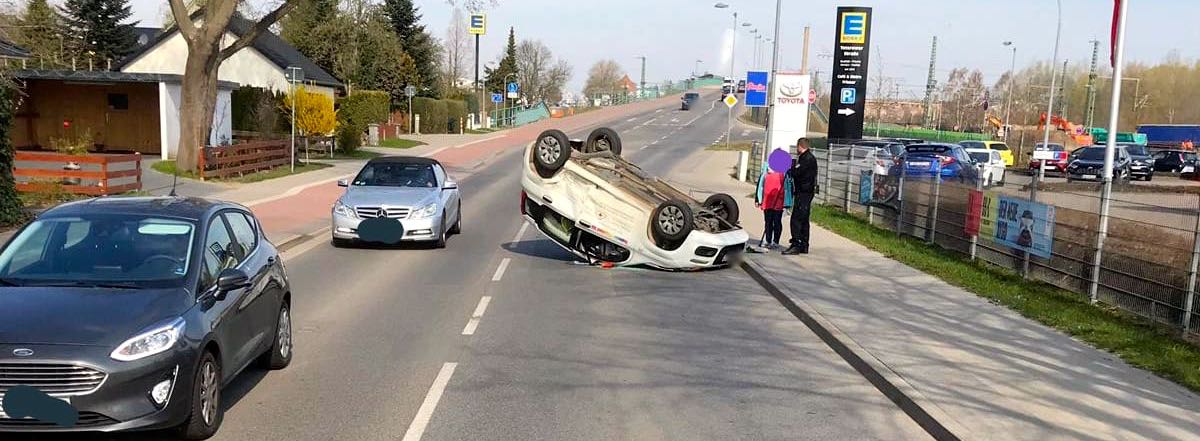 Der Fiat überschlug sich. Die 41-jährige Autofahrerin und auch die Transporterfahrerin erlitten leichte Verletzungen und wurden ins Müritz-Klinikum gebracht.