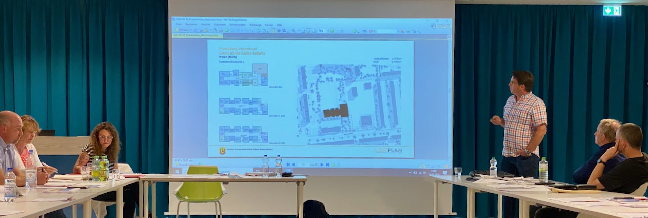 Foto oben: Der Planer präsentiert den Standort der neuen Käthe-Kollwitz-Schule.