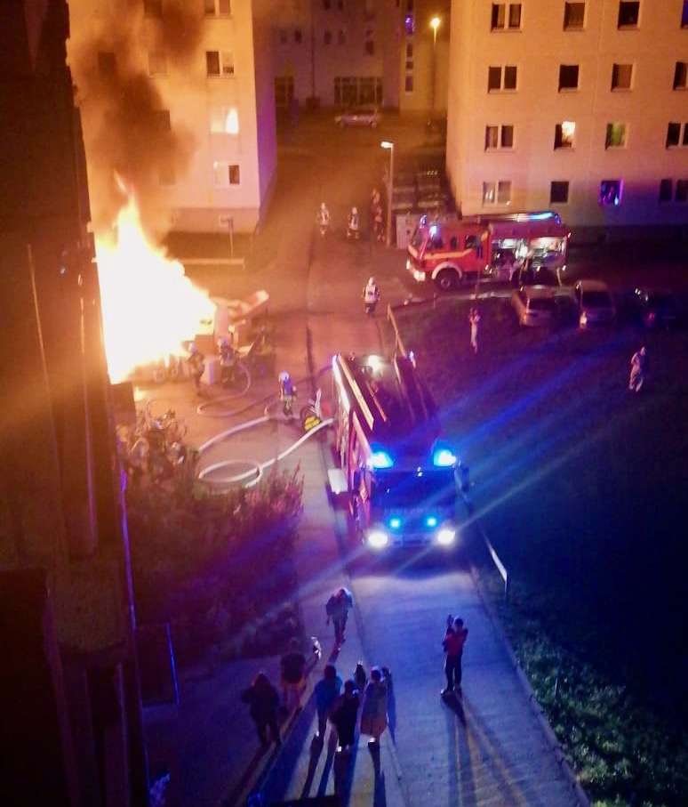 Des Weiteren befindet sich an der Giebelseite eines dortigen Mehrfamilienhauses derzeit ein Baugerüst, an dem mehrere Gerüstbohlen durch das Feuer beschädigt wurden. Der Gesamtschaden wird auf ca. 1500 Euro geschätzt.