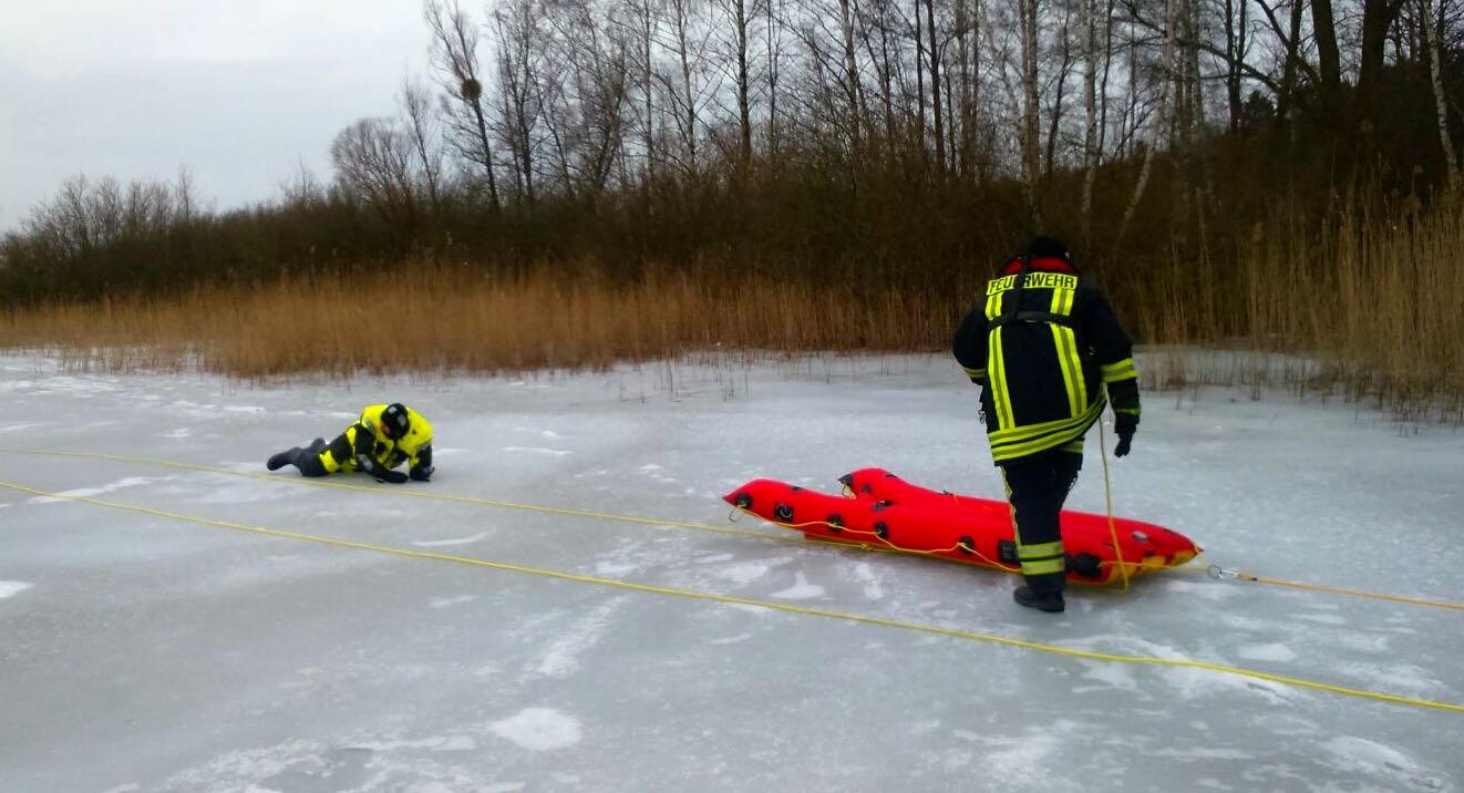 Dramatische Rettungsaktion heute am Lübziner See nordwestlich unseres Landkreises: Gegen 10:30 meldeten Bürger der Polizei, dass eine Person in den Lübziner See eingebrochen sei. Streifenwagen der Polizeireviere Sternberg und Bützow fuhren zum Einsatzort. Die alarmierten Einsatzkräfte der Feuerwehren aus Lübzin und Bützow und ebenso der Rettungsdienst verlegten zum See.