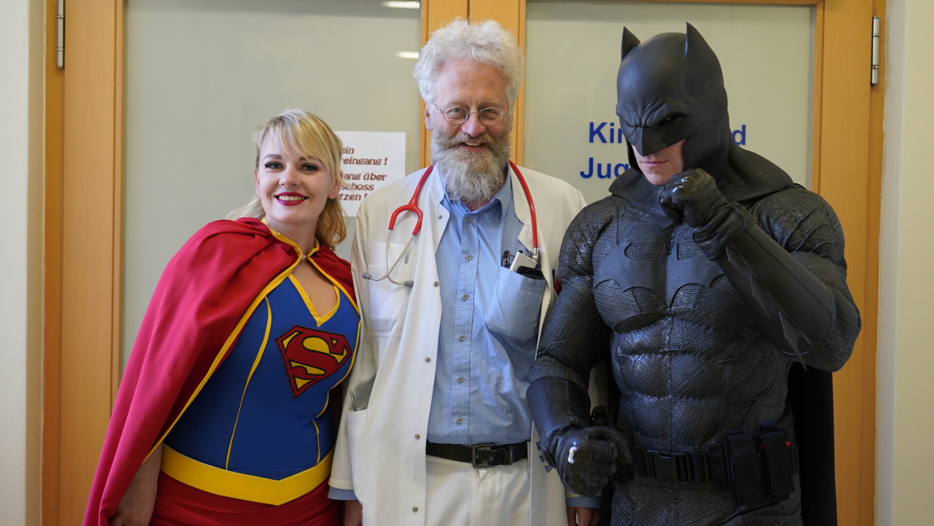 In den Rollen von Supergirl und Batman gingen Aleksandra Rydzewska und Tomasz Gierwiatowski aus Stettin von Zimmer zu Zimmer, sprachen mit den Kindern, machten Fotos und schenkten ihnen eine willkommene Abwechslung vom Klinikalltag. Eingeladen wurden sie vom Kinderonkologen Prof. Carl Friedrich Classen, der durch die Familie eines Patienten auf das Projekt aufmerksam wurde.