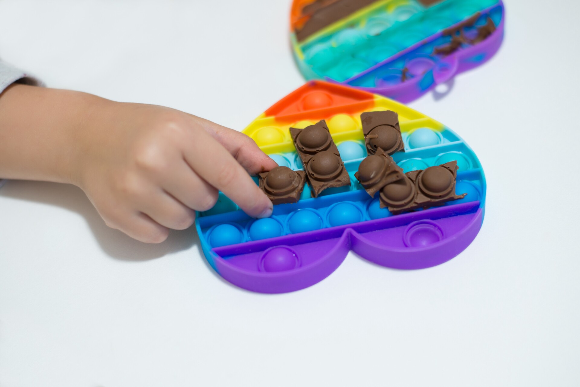 Wer kennt sie nicht, die bunten Pop-It-Fidget-Toys (kurz: Pop-Its) – Spielzeug-Silikonförmchen mit Blasen, die man von einer zur anderen Seiten ploppen kann. Doch eignen sie sich auch für die Verwendung in der Küche? Die Einsatzmöglichkeiten der Pop-Its scheinen vielfältig zu sein. Vor allem auf Social-Media-Kanälen gibt es neben vielen Spielideen auch Anleitungen für die Zubereitung von Minipralinen, Gummibärchen oder Schokoriegeln in diesen Förmchen. Gerade in der Vorweihnachtszeit werden viele Menschen kreativ und bereiten kleine Leckereien zum Verschenken an Familie oder Freunde zu. Doch Vorsicht, mahnt die Verbraucherzentrale MV:
