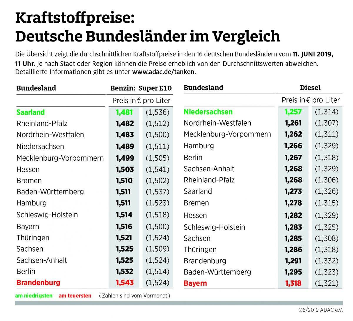 In der aktuellen Untersuchung hat der ADAC gestern um 11 Uhr die Preisdaten von mehr als 14.000 bei der Markttransparenzstelle erfassten Tankstellen ausgewertet und den Bundesländern zugeordnet. Die ermittelten Preise stellen eine Momentaufnahme dar. Unkomplizierte und schnelle Hilfe für preisbewusste Autofahrer bietet die Smartphone-App „ADAC Spritpreise“. Ausführliche Informationen rund um den Kraftstoffmarkt gibt es zudem unter www.adac.de/tanken.