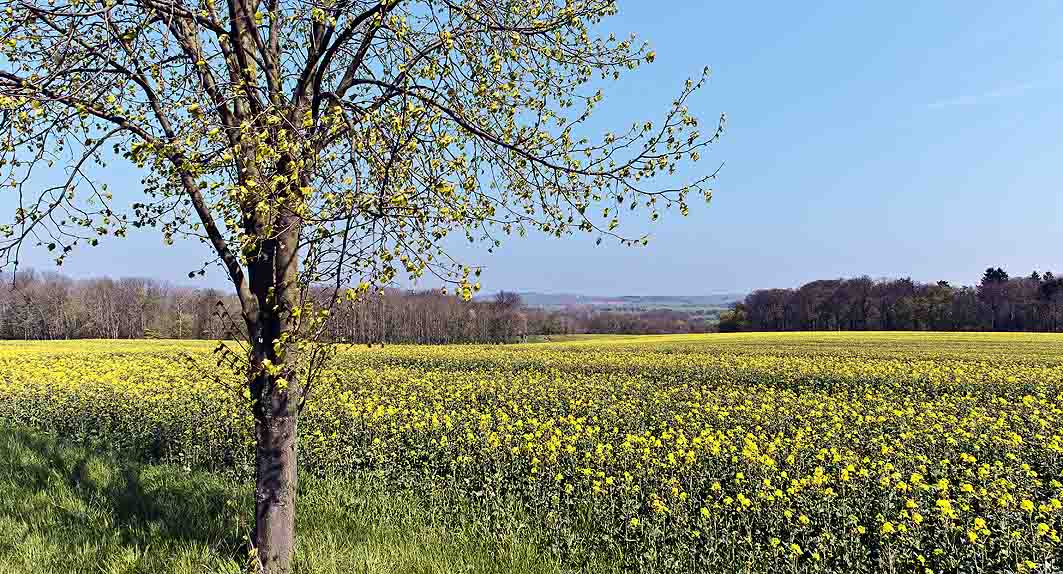 So langsam wird es wieder gelb auf den Feldern der Müritz-Region, wie hier in der Nähe von Klocksin. Jedes Jahr buchen zahlreiche Urlauber Quartiere in der Region, nur um die Rapsblüte live und in Farbe zu erleben.