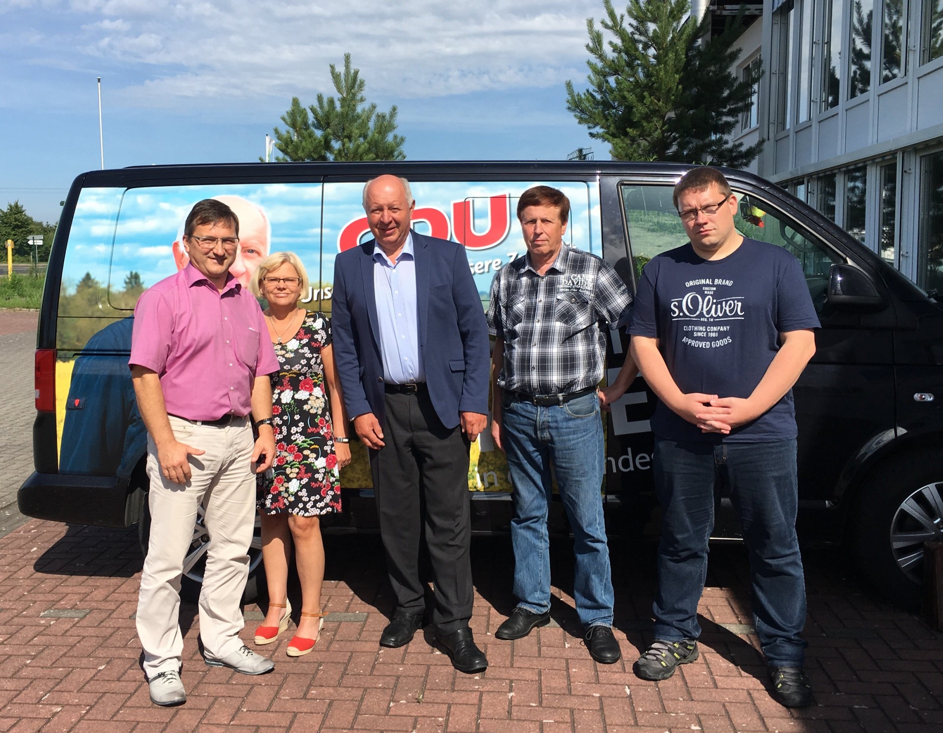 Foto: Eckhardt Rehberg mit den Mitarbeitern der Maruschke Personaldienstleistungen GmbH Waren.