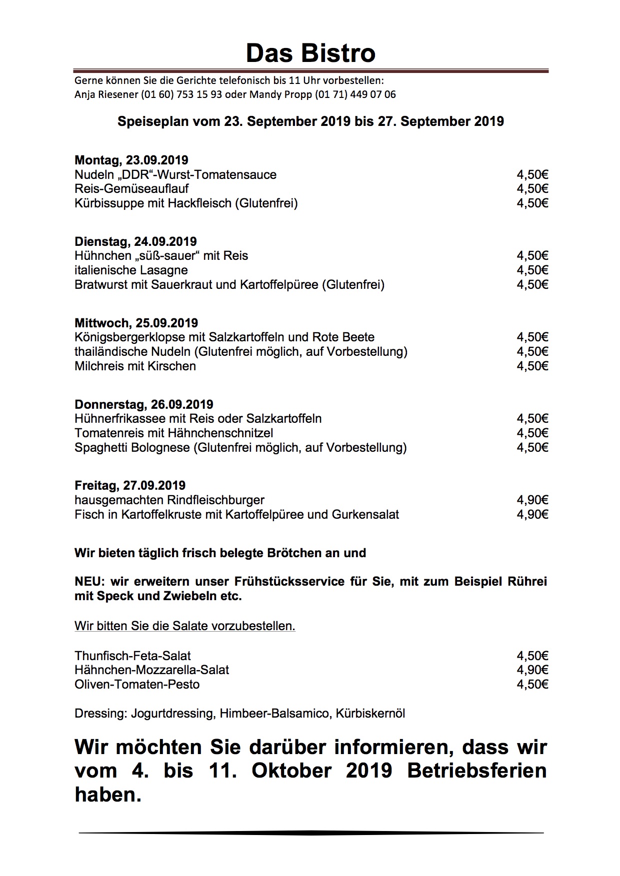 Das gibt’s in dieser Woche im „Bistro“ am Warener Amtsbrink: