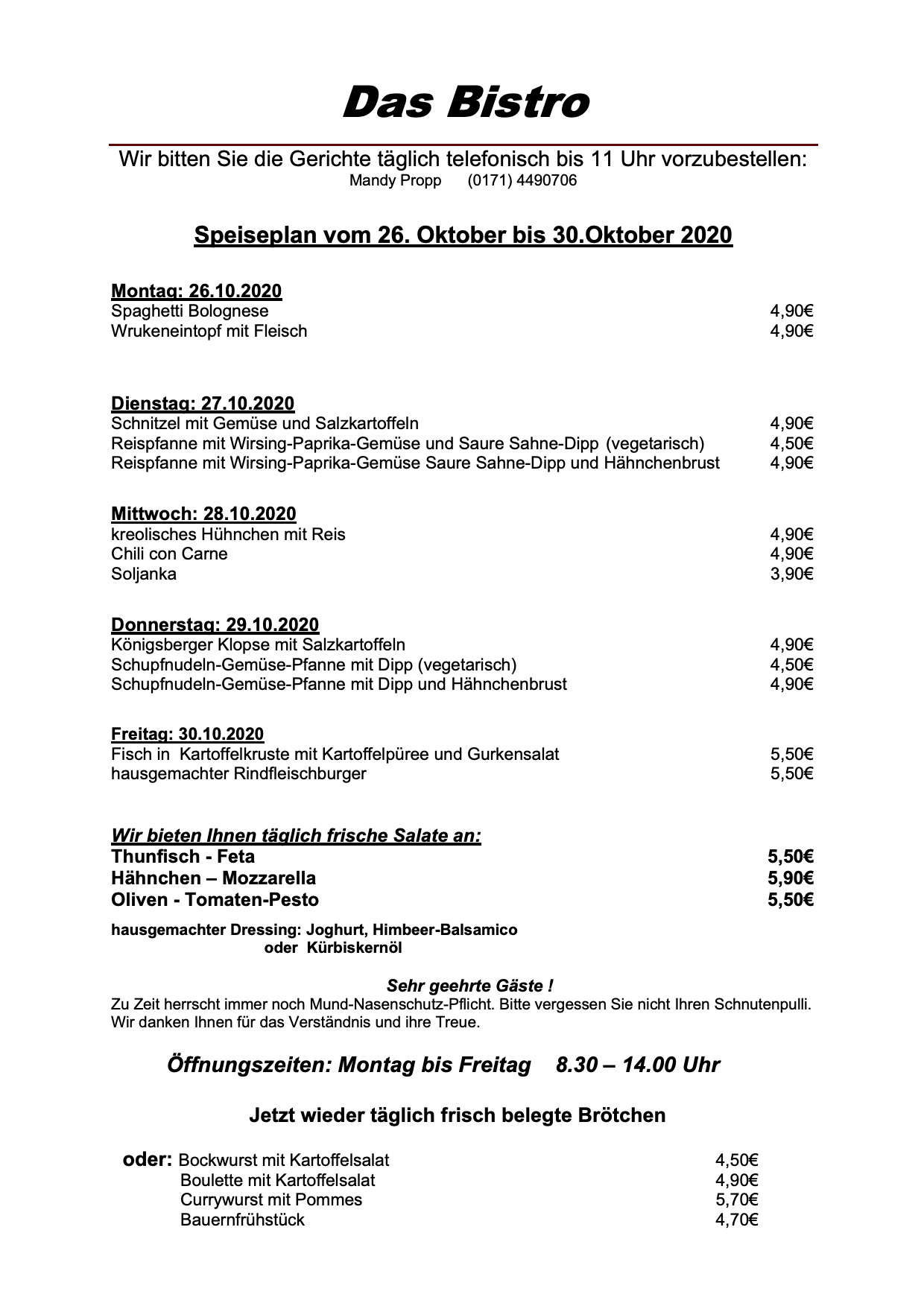 Die Woche beginnt in „Das Bistro“ am Warener Amtsbrink mit Spaghetti Bolognese sowie Wrukeneintopf.