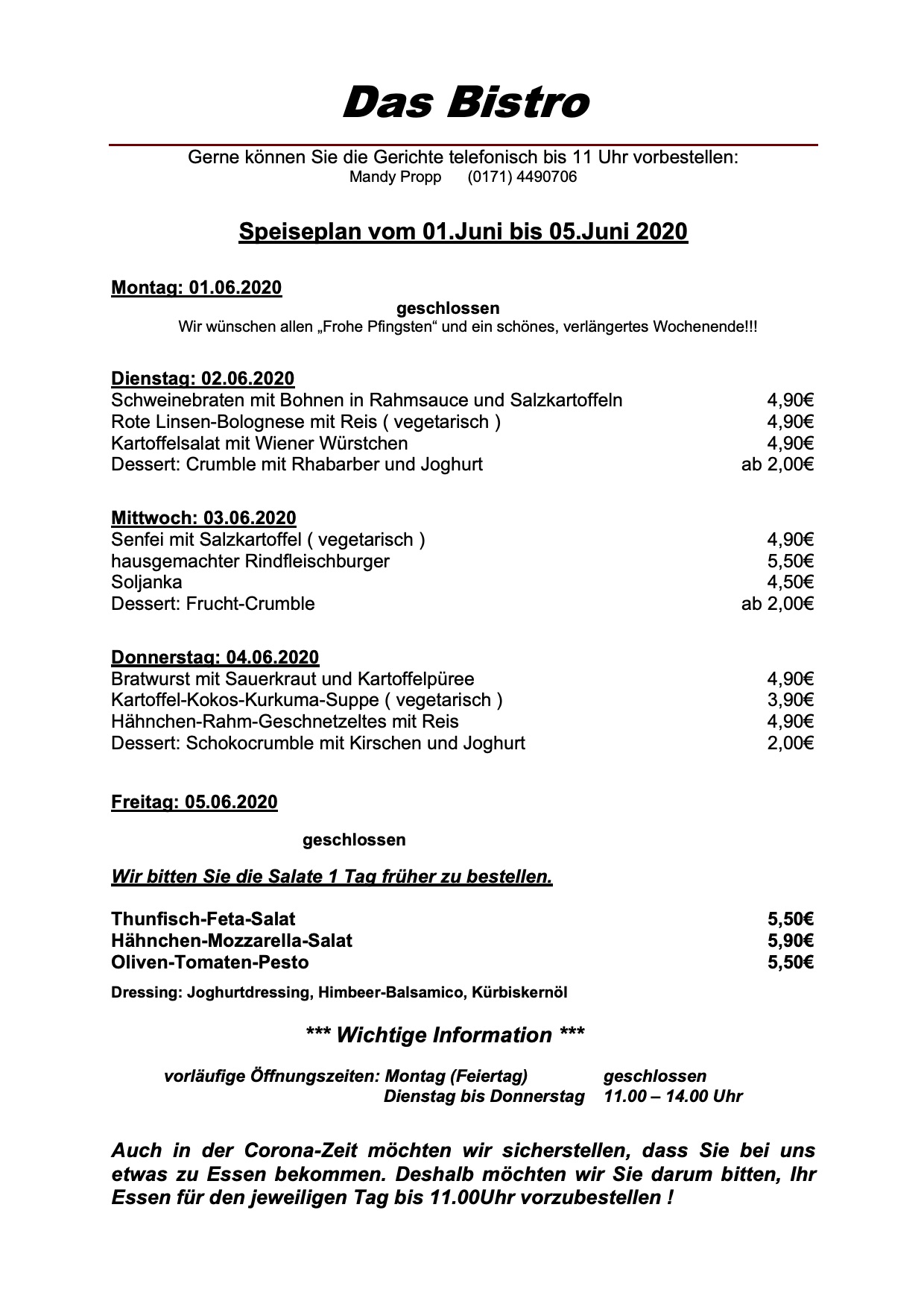 Und das gibt’s in dieser verkürzten Woche im „Das Bistro“ am Warener Amtsbrink:
