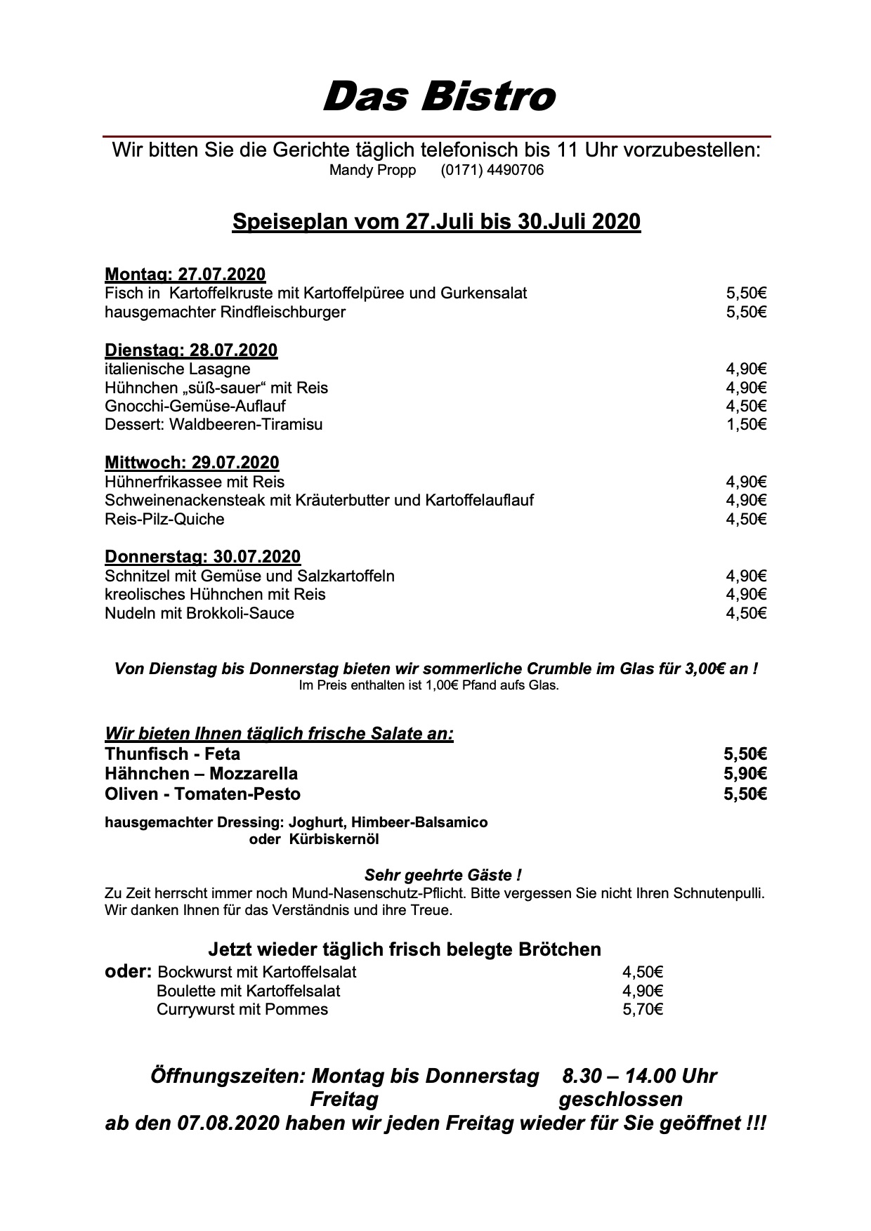 Und hier der Speiseplan für diese Woche: