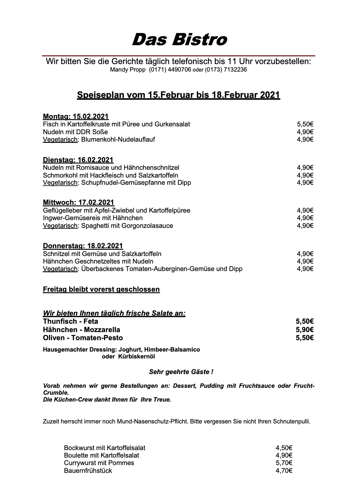 Die Woche beginnt in „Das Bistro“ am Warener Amtsbrink mit