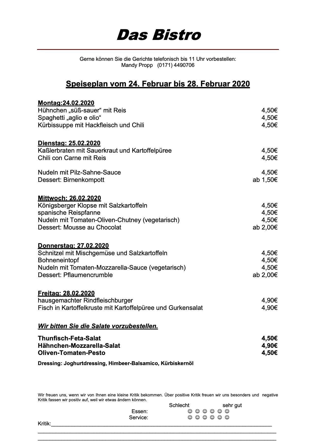 Das gibt’s in dieser Woche in „Das Bistro“ am Warener Amtsbrink: