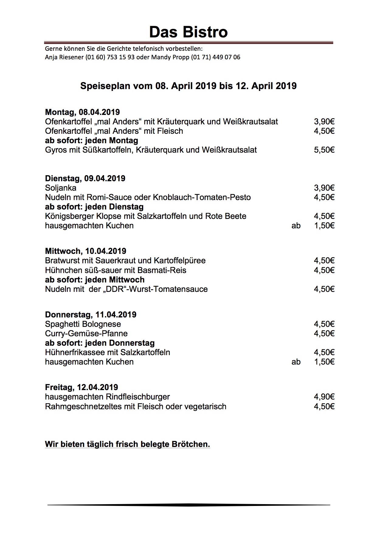 Und das gibt’s diese Woche in „Das Bistro“ (ehemals Sylvis Bistro) am Warener Amtsbrink: