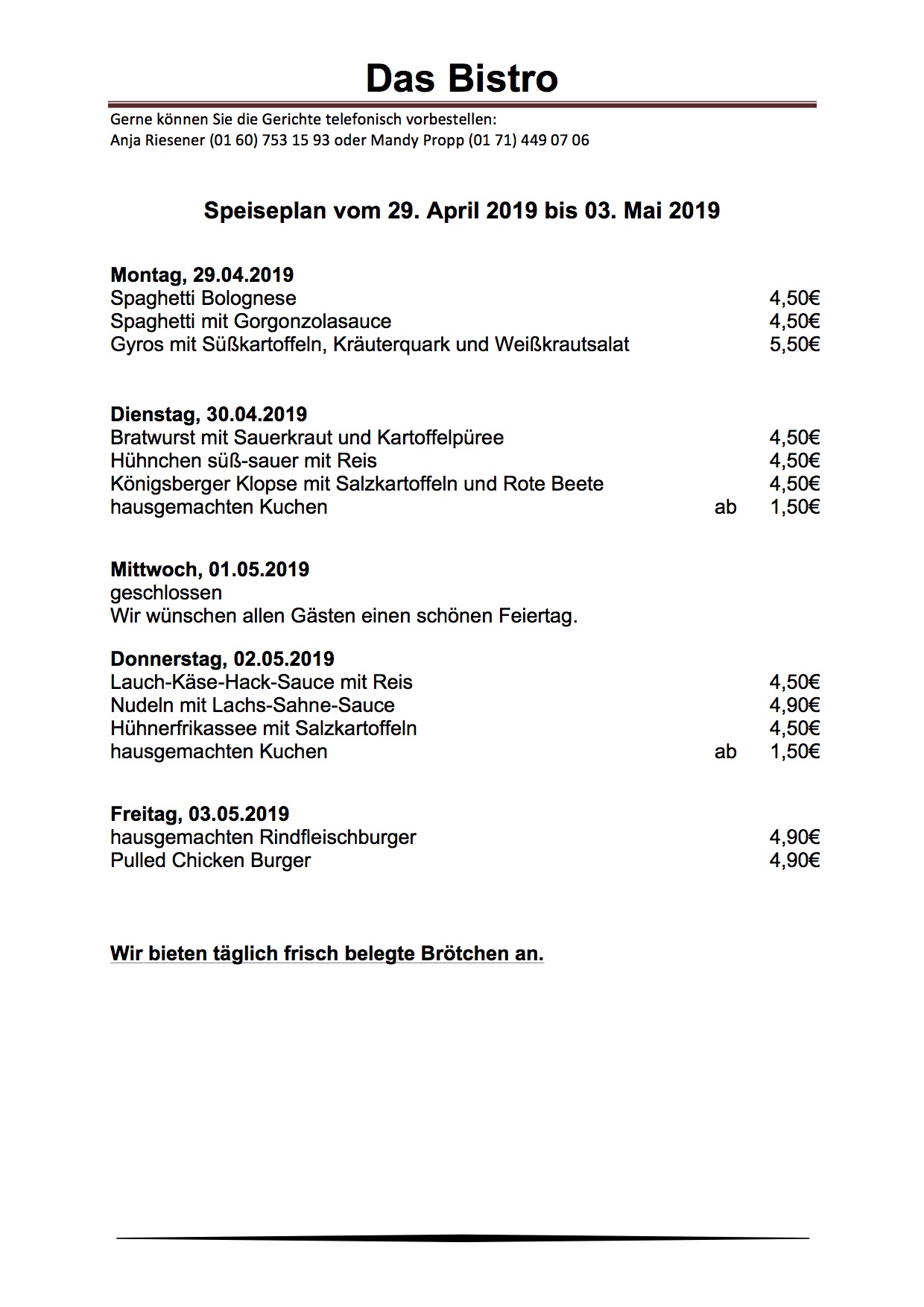 Das gibt’s im „Bistro“ am Warener Amtsbrink in dieser verkürzten Woche: