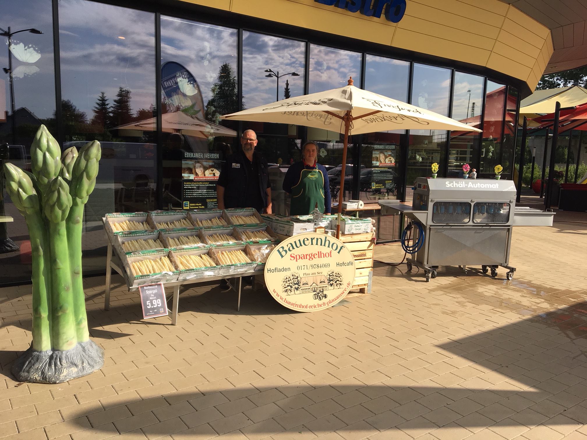 Frischer und regionaler geht es nicht: Bei EDEKA in der Teterower Straße gibt’s am morgigen Sonnabend, 4. Mai, Spargel vom Bauernhof Reichelt aus Plau am See. Aber nicht nur das: Mit einer speziellen Maschine, die auch auf dem Bauernhof zum Einsatz kommt, werden die gekauften Spargel der Kunden kostenlos geschält.