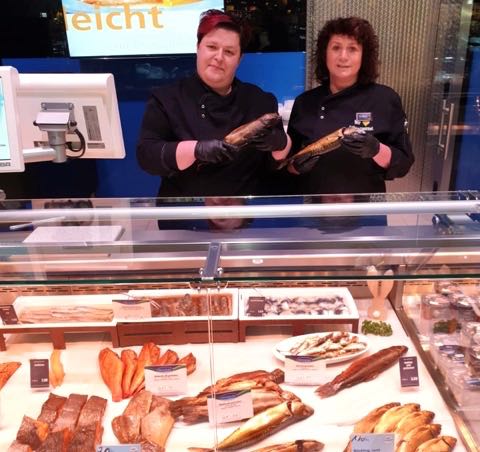 Neben Steffen Steinbeck stehen auch die Fischverkäuferinnen Kerstin Geilus und Stefanie Rautenberg Rede und Antwort – wie jeden Tag in unserem Markt.
