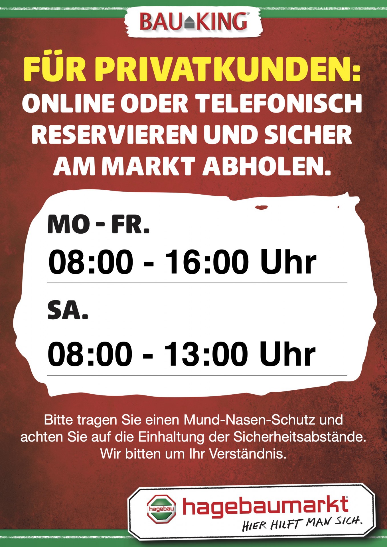 Neue Öffnungszeiten beim hagebaumarkt Waren. Und ein wichtiger Hinweis: Der Gutschein über 5 Euro, den die Kunden beim Kauf ihres Weihnachtsbaumes im Dezember erhalten haben, und der im Januar eingelöst werden sollte, behält über den Januar hinaus seine Gültigkeit. Er kann auch jetzt während des angebotenen Bestell- und Abholservices genutzt und eingelöst werden. Weiterhin kann der Gutschein ab dem Tag, an dem der hagebaumarkt wieder vollumfänglich für seine Kunden da sein darf, weitere vier Wochen eingelöst werden.