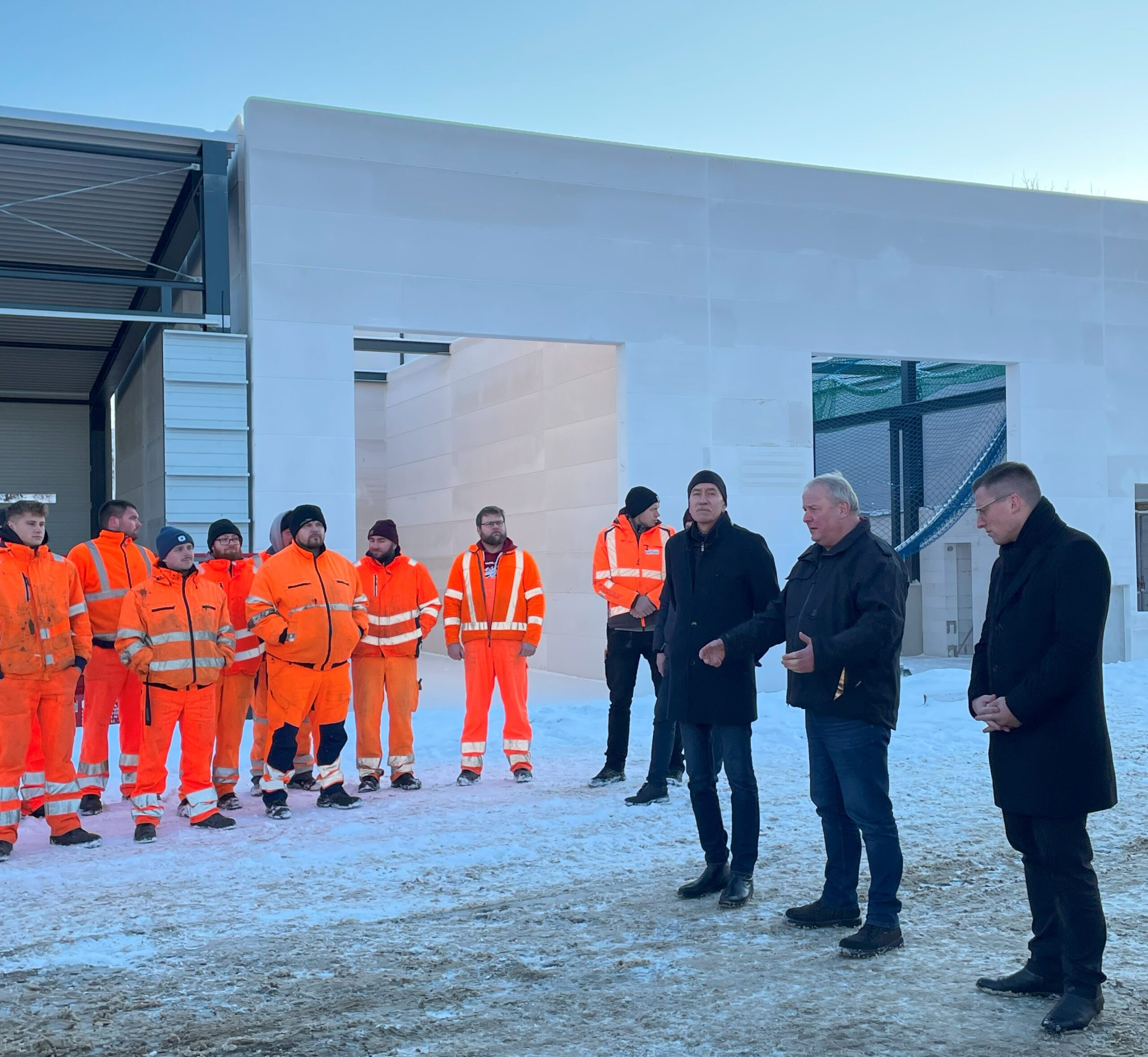 „Die Bedingungen hier am Standort waren, gelinde gesagt, nicht gerade ideal: Das bisherige Gebäude aus den 1950ern war nicht nur stark baufällig, sondern auch zu klein, so dass Technik in zusätzlichen Räumen in der Brunnenstraße stehen musste. Dieser Neubau war daher längst überfällig“, so Müller. Er betonte, dass die moderne und schlagkräftige Kreisstraßenmeisterei nicht nur für die Bürger ein Gewinn wird: „Auch unsere Mitarbeiter hier vor Ort, die gerade jetzt im Winter jeden Tag für unsere Sicherheit im Einsatz sind, verdienen zeitgemäße und bedarfsgerechte Arbeitsbedingungen“.