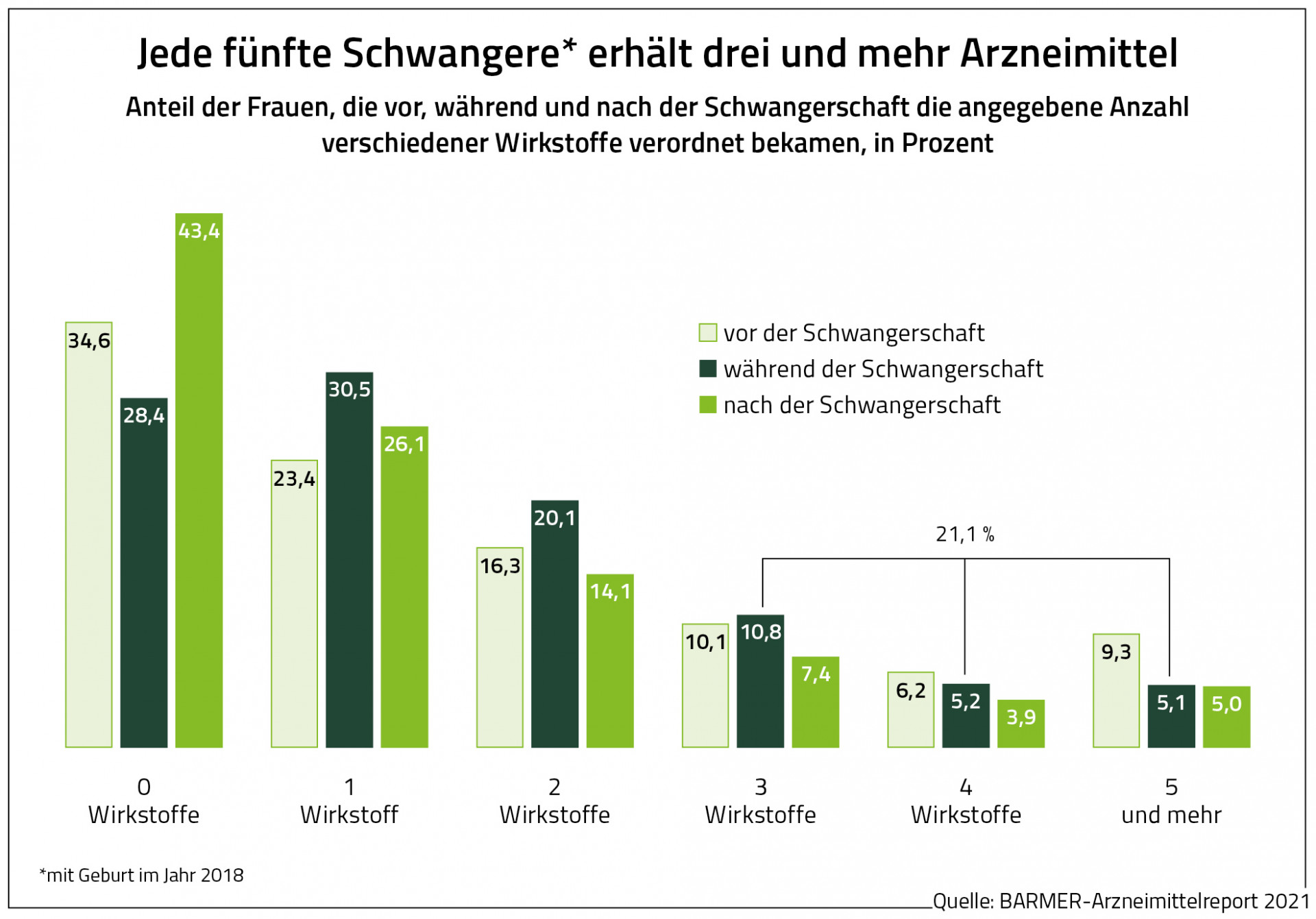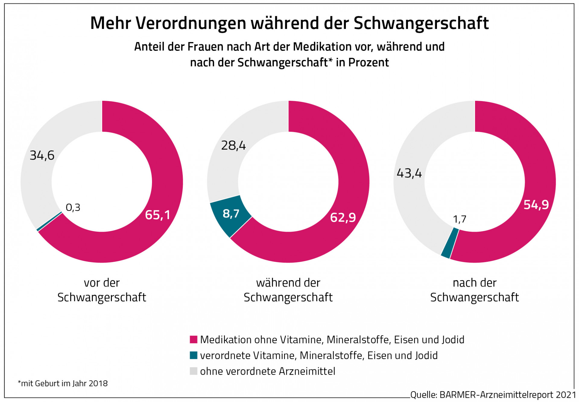 Laut Arzneimittelreport dürften rund 30 Prozent der Frauen vor einer Schwangerschaft regelmäßig Arzneimittel einnehmen. Allerdings besitzt offenbar nur eine kleine Minderheit einen Medikationsplan. Das legt eine vertiefende Umfrage für den Arzneimittelreport nahe. Befragt wurden dabei knapp 1.300 BARMER-Versicherte, die im vergangenen Jahr entbunden haben. „Der Schutz des ungeborenen Kindes muss schon vor der Schwangerschaft beginnen. Dazu sollte die Gesamtmedikation junger Frauen grundsätzlich auf kindsschädigende Risiken geprüft werden. In der Schwangerschaft kommt ein Medikamenten-Check zu spät, um das ungeborene Kind vor Schäden zu schützen“, sagte der Autor des Arzneimittelreports, Prof. Dr. med. Daniel Grandt, Chefarzt am Klinikum Saarbrücken.