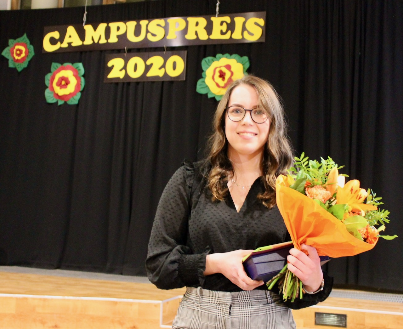 Schließlich, durch das Trompetensolo des Neuntklässlers Joris Taube angekündigt, kam das Programm zum Höhepunkt des Abends: Die Verleihung des Campuspreises 2020. Schon Wochen vorher gab es große Spekulationen und Gerüchte unter der Schülerschaft, wer dieses Jahr die große Ehre bekommt, den gläsernen Pokal in der Hand zu halten.