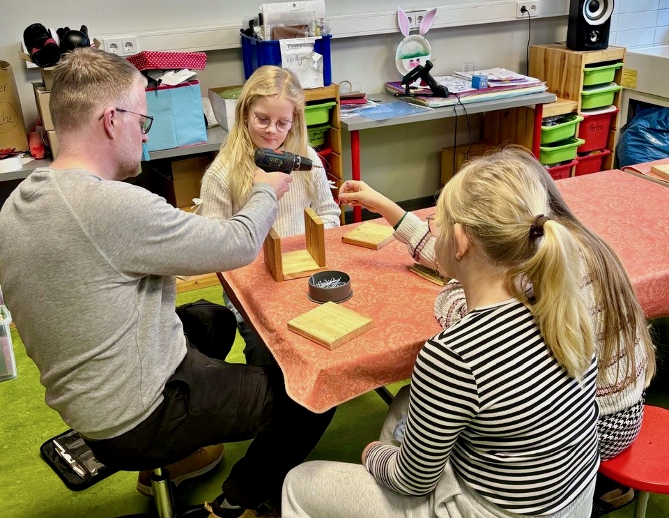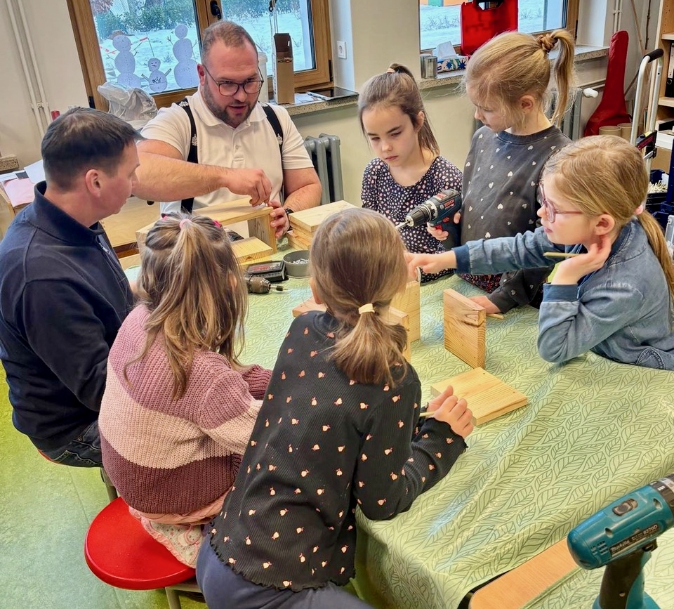 In dieser ersten Phase der Aktion standen die einzelnen Nisthilfen im Mittelpunkt. Besonders bemerkenswert: Unter den Teilnehmern befanden sich stolze 20 Mädchen, die mit einer Begeisterung zu Werke gingen, die fast schon einen Hauch von „Girls‘ Day“ versprühte. Ganz im Sinne dieses Aktionstages, der Mädchen für technische und handwerkliche Berufe motivieren soll, griffen sie unter fachkundiger Anleitung der CDU-Mitglieder und Erzieherinnen selbstbewusst zum Akkuschrauber. Mit großem Eifer und handwerklichem Geschick wurden die hölzernen Fächer zusammengebaut, die später das Herzstück des Insektenhotels bilden werden. Es war beeindruckend zu sehen, mit welcher Ausdauer die kleinen Handwerkerinnen bei der Sache waren, um den künftigen „tierischen Gästen“ ein stabiles Zuhause zu schaffen.