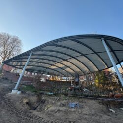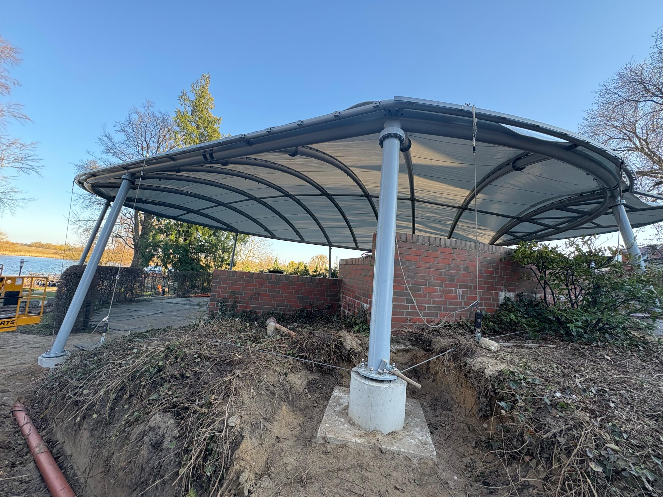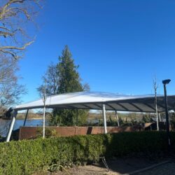 Ein tolles Konzert vor herrlicher Kulisse, aber es regnet? Eine phantastische Theateraufführung, aber die Sonne knallt unerbittlich auf den Kopf? In Röbel ist das künftig kein Problem mehr. Denn der beliebte Bürgergarten mit seinen rund 200 Plätzen wird gerade überdacht. Nicht irgendwie – die Konstruktion ist durchdacht. Sie schützt vor Regen und Sonne, erlaubt aber dennoch den Blick in Richtung Müritz. Zahlreiche Firmen – vor allem aus der Region selbst – sind seit einigen Wochen mit dem Aufbau beschäftigt, bis zur Saisoneröffnung am 1. Mai soll alles fertig sein. Das klappt auch, wie Stadtsprecher Karsten Thorun auf Nachfrage von „Wir sind Müritzer“ bestätigte. Und das trotz des doch längeren Winters, der den Zeitplan etwas durcheinander gewirbelt hat.