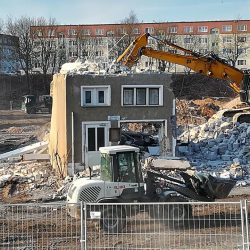 So nach und nach verschwinden die letzten alten Gebäude im Röbeler „Hafenquartier“. Auf dem Areal, auf dem vor allem Garagen standen, haben seit einigen Wochen schwere Maschinen das Sagen.