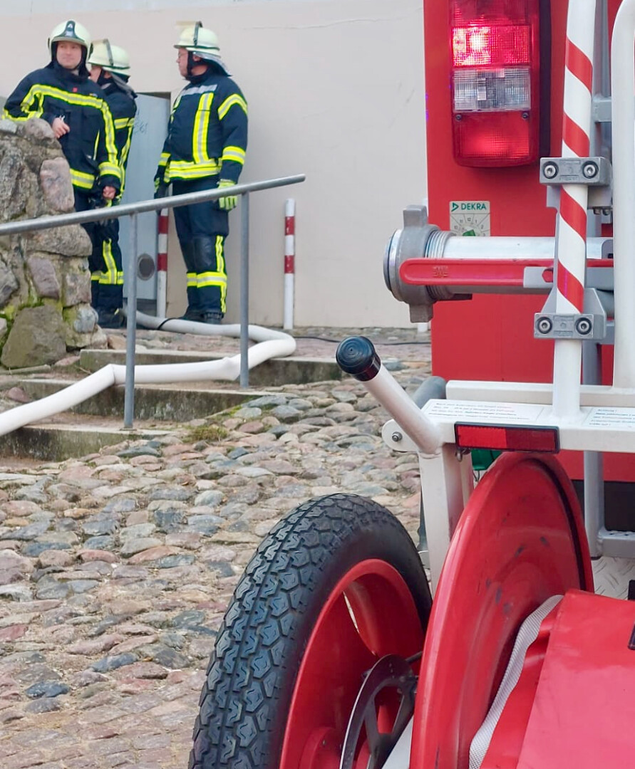 Warens Feuerwehrleute waren heute Vormittag wieder als Helfer in der Not im Einsatz. In einem Haus in der Langen Straße gab es einen Wasserrohrbruch, das Wasser stand rund einen halben Meter hoch im Keller.