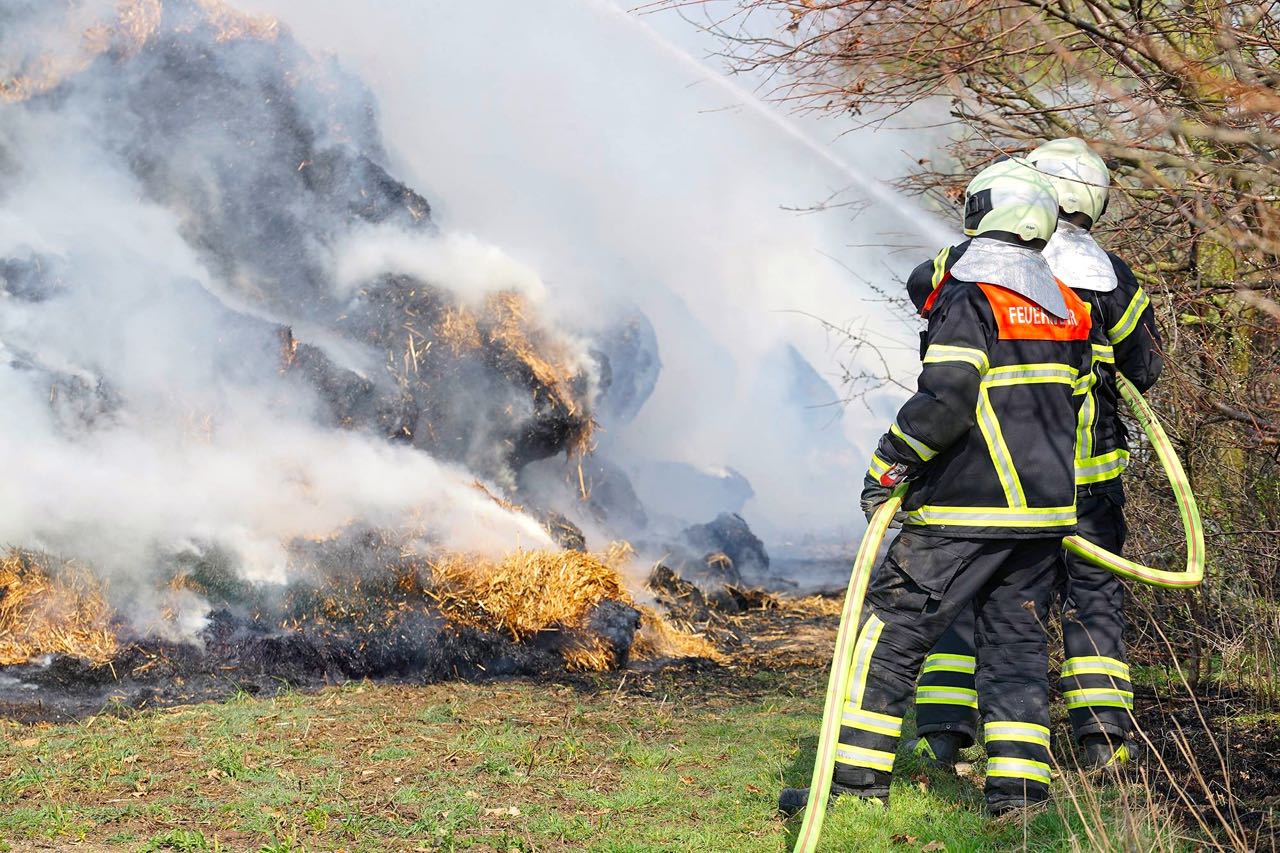 Die unheimliche Brandserie an der Seenplatte setzt sich fort. Mitten am Tag ging heute nahe Neuendorf an der B 192 eine riesige Strohmiete in Flammen auf. Laut Feuerwehr verbrannten auf dem Feld bis zu 300 Strohballen. Fünf Löschzüge der Berufsfeuerwehr und umliegender Freiwilliger Feuerwehren im Einsatz, um den Brand zu löschen. Die Löschmaßnahmen werden noch mehrere Stunden andauern, da die Strohballen gepresst sind, was die Löschmaßnahmen erschwert. Es gibt aber keine Verkehrseinschränkungen auf der B 192.
