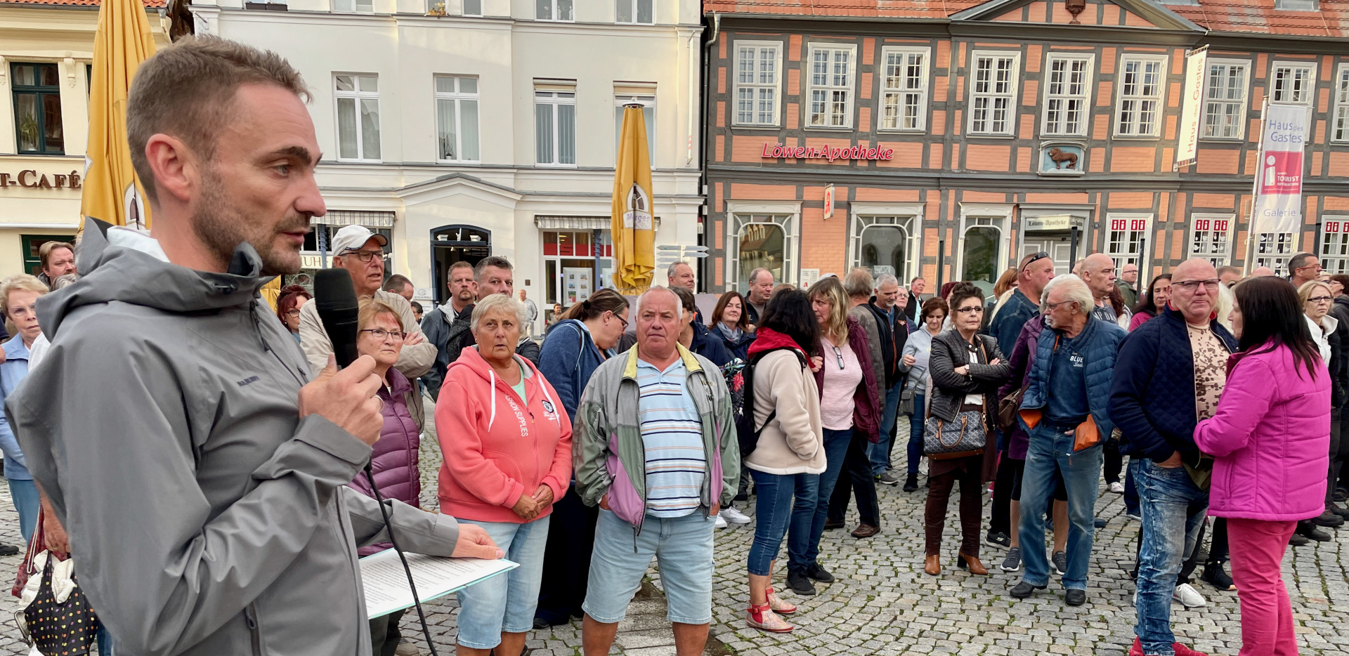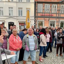 Häcker kritisierte die Regierung massiv, vermied aber einen aufwiegelnden Ton, sondern versuchte, seine Kritikpunkte mit Argumenten zu belegen. Und das sehr ruhig. Das kam nicht bei jedem an. „Ich hätte mir mehr Power gewünscht. Er hätte klarer sagen sollen, dass unsere Regierung sch… ist“, meinte ein Teilnehmer gegenüber „Wir sind Müritzer“. Andere wiederum fanden gerade die ruhigere Gangart gut.