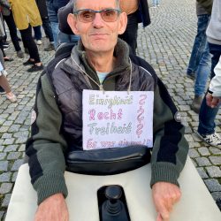 Bin Parteineneutral. Es gibt mehrer Lebensumfelder, aber die größte ist die Gesellschaft, die unser Leben fremd bestimmt. Diese Plattform ermöglicht Meinungsfreiheit zu äußern und Diskusionen zu führen. Die Stromkästen sind Reaktionen auf die Aktionen der Regierung. Eine Demonstration startet nicht wie eine Rakete, denn ich bin gegen Gewalt und Eskalation. Wie wichtig Demonstrationen sind zeigten die Hahre 1989/90. Was ist es für eine Hilfe für andere, wenn man sich selber dafür zerstört.