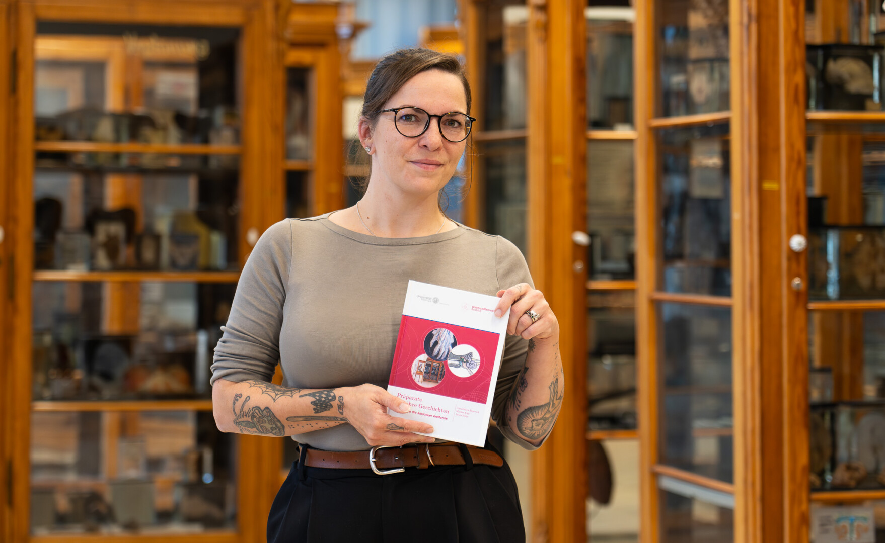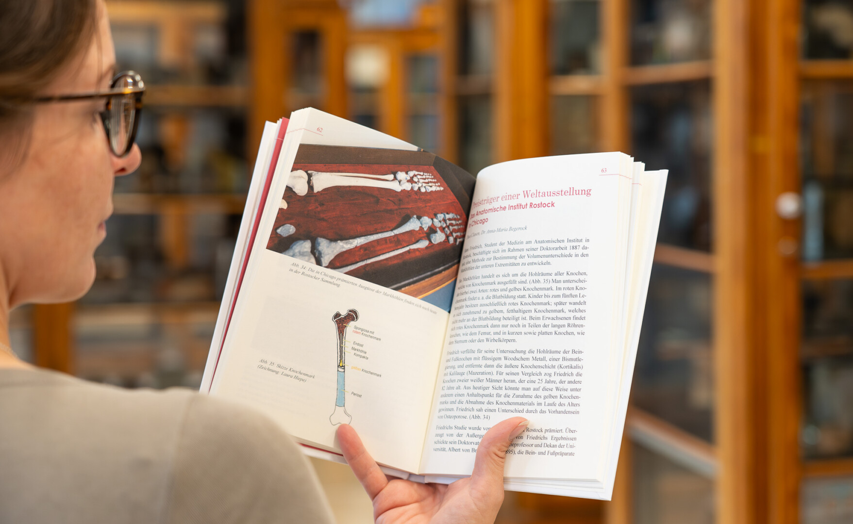 Bilder: Sammlungsbeauftragte Laura Hiepe ist stolz auf die Neuerscheinung, die ganz neue Einblicke in die Anatomische Sammlung bietet.