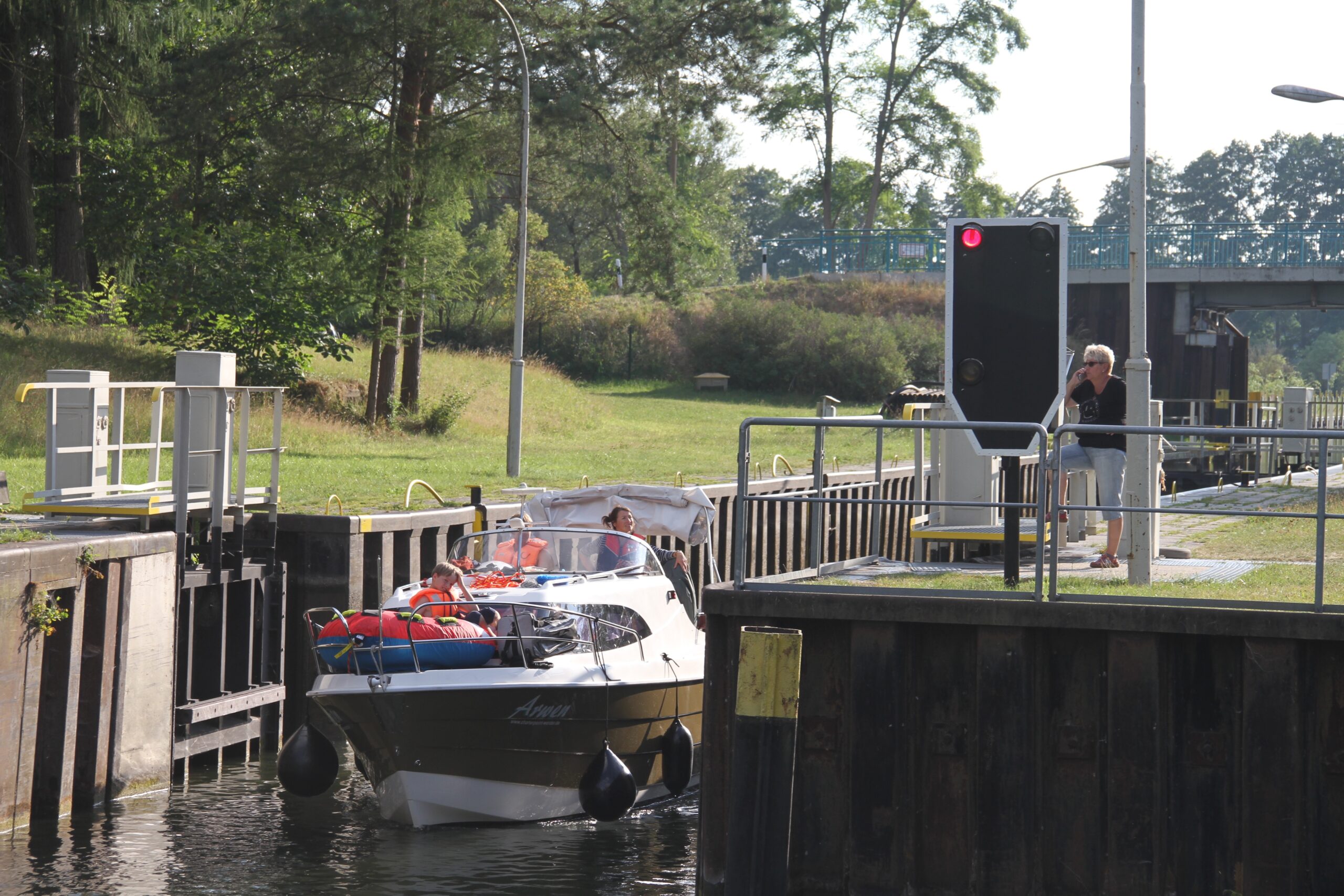 Vom 1. Juni bis 31. August sind die Teilzeit-Schleusenwärter im Dienst. Sie werden auf ihre Aufgaben mit einem dreitätigen Kurs vorbereitet. Die wichtigen Wartungs- und Unterhaltungsarbeiten werden in der Frühschicht von den hauptamtlichen Schleusenwärtern erledigt.