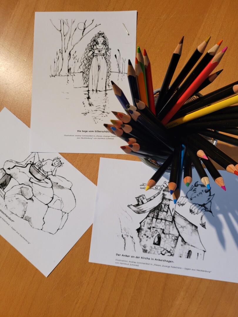 Diese und viele weitere sagenhafte Orte mit archäologischem Ursprung in der Müritz-Region besuchte Felicitas Ehmig und recherchierte dazu in den Bibliotheken. Das Ergebnis ihrer Arbeit wird nun bis März 2024 im Rahmen der Sonderausstellung „Sagenhafte Archäologie“ im Schliemann-Museum Ankershagen präsentiert. Insbesondere für Einheimische der Müritz-Region gibt es dabei sicherlich viel Spannendes und Interessantes zu erfahren. Dazu wird das Thema auch für Kinder im „Sagenstübchen“ erlebbar gemacht.